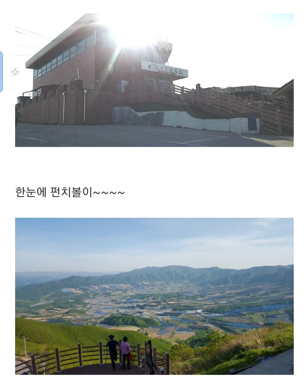 펀치볼이 한눈에 보인다는 을지전망대를 올라가 망원경으로 금강산도 둘러보고 철책선도 볼 수 있었다. 군인 아저씨가 나와서 설명해 주던 모습이 오래도록 남았다. 그리고 그곳에서 바라본 펀치볼. 다들 펀치볼은 알고 있을 것이다 ‘펀치(PUNCH)를 담는 그릇(BOW) 같다고 해서 미국의 한 기자가 그렇게 불러 이름이 지금까지 그렇게 불러지고 있는 곳이다. 주변보다 푹 꺼진 분지이다.