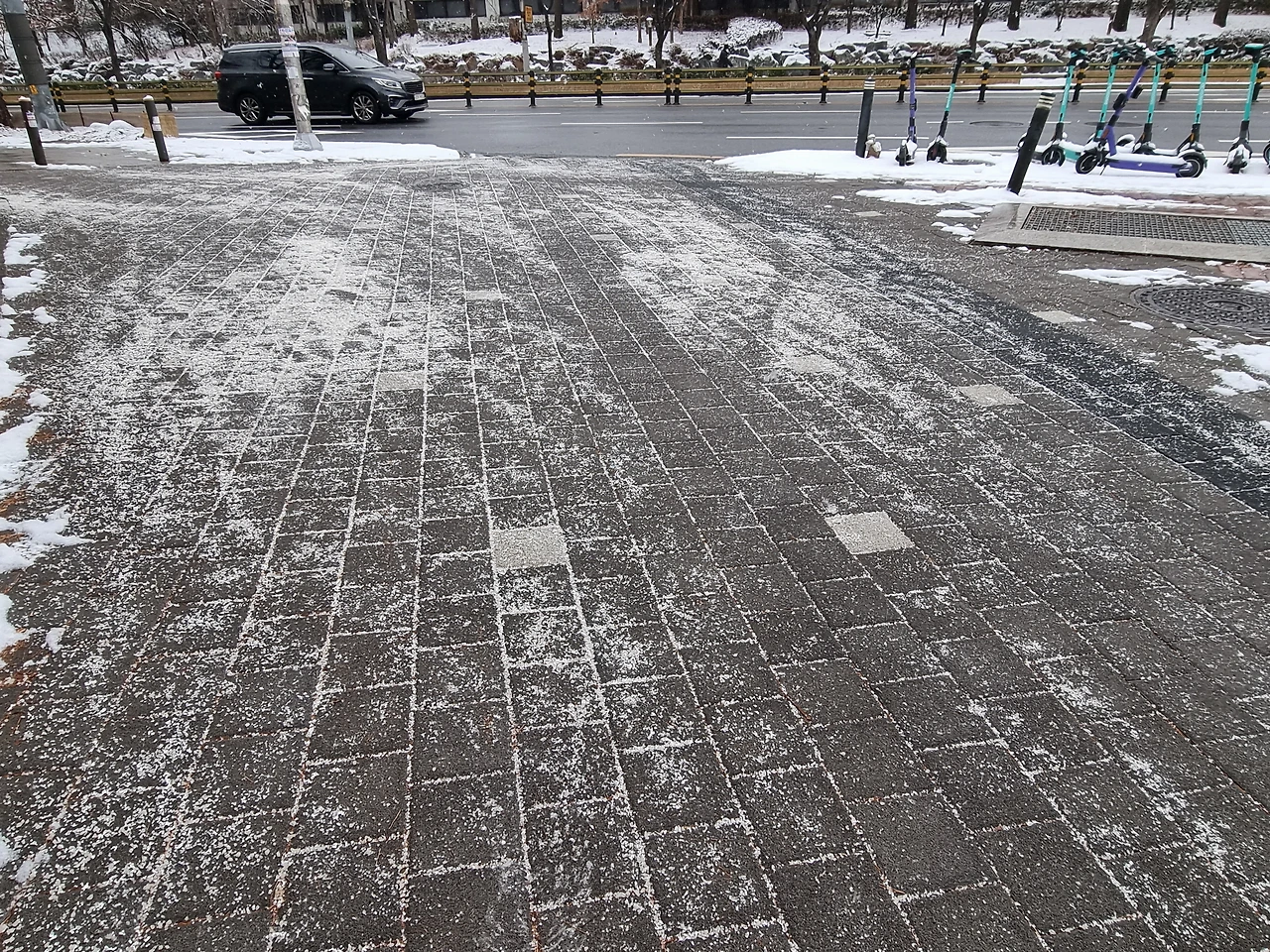 내리는 눈은 앉아보지도 못하고 염화칼슘에 초토화가 되어버린다.