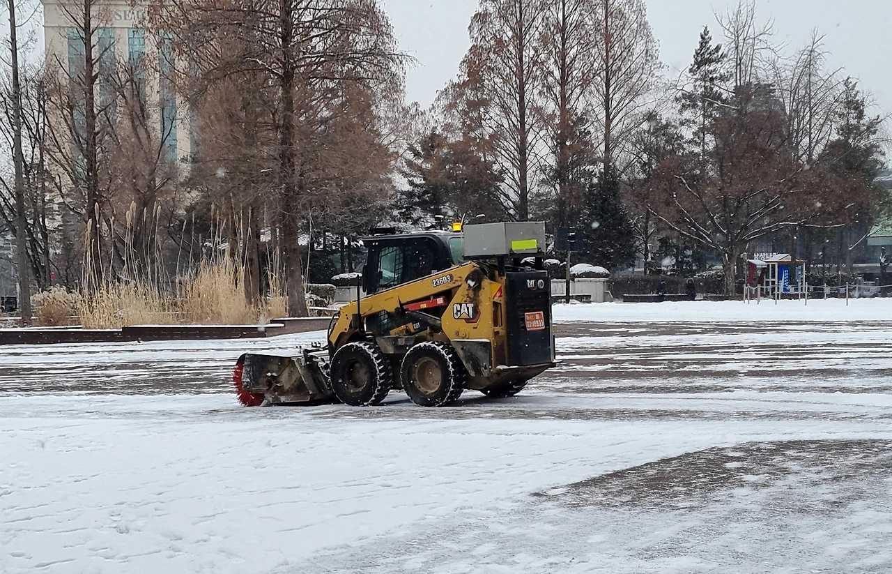 청소하는 분들이 새벽에 나와서 제설작업하라고