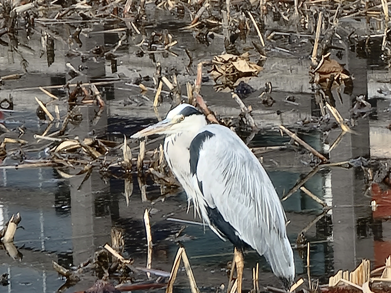 성내천으로 나오니 왜가리와 중대백로가 보인다.