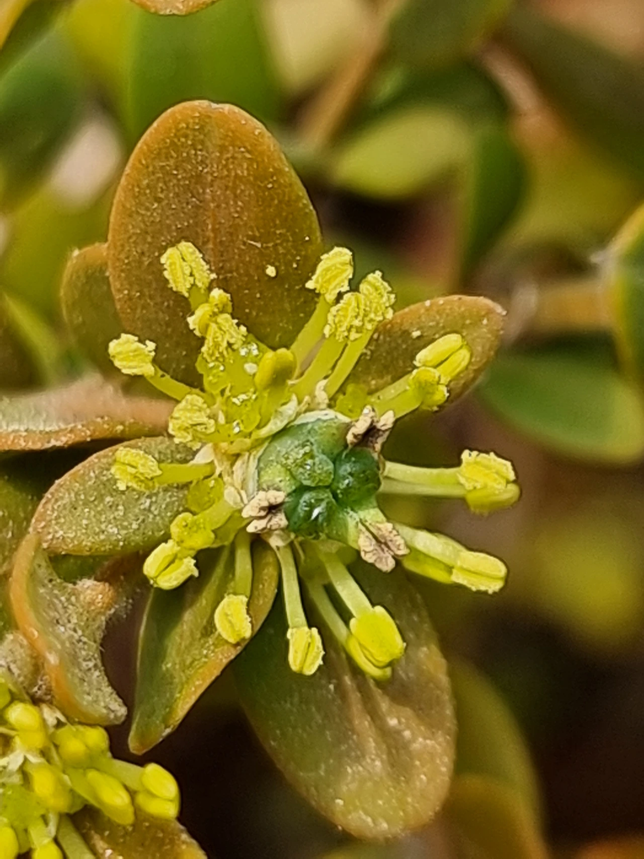 가운데 암술 하나에 4개의 수술이 그 주위를 빙 둘러 서있다.