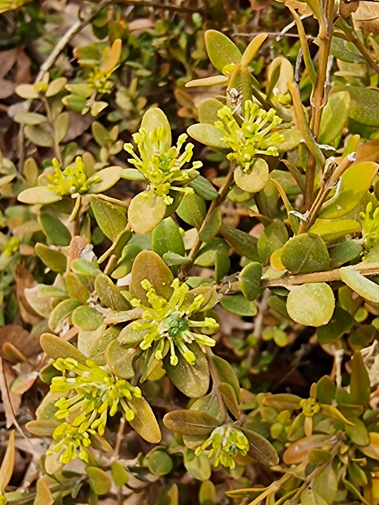 추운 겨울에도 작은 키에 애기 손톱보다 더 적은 잎을 수 없이 달고 서 있다.