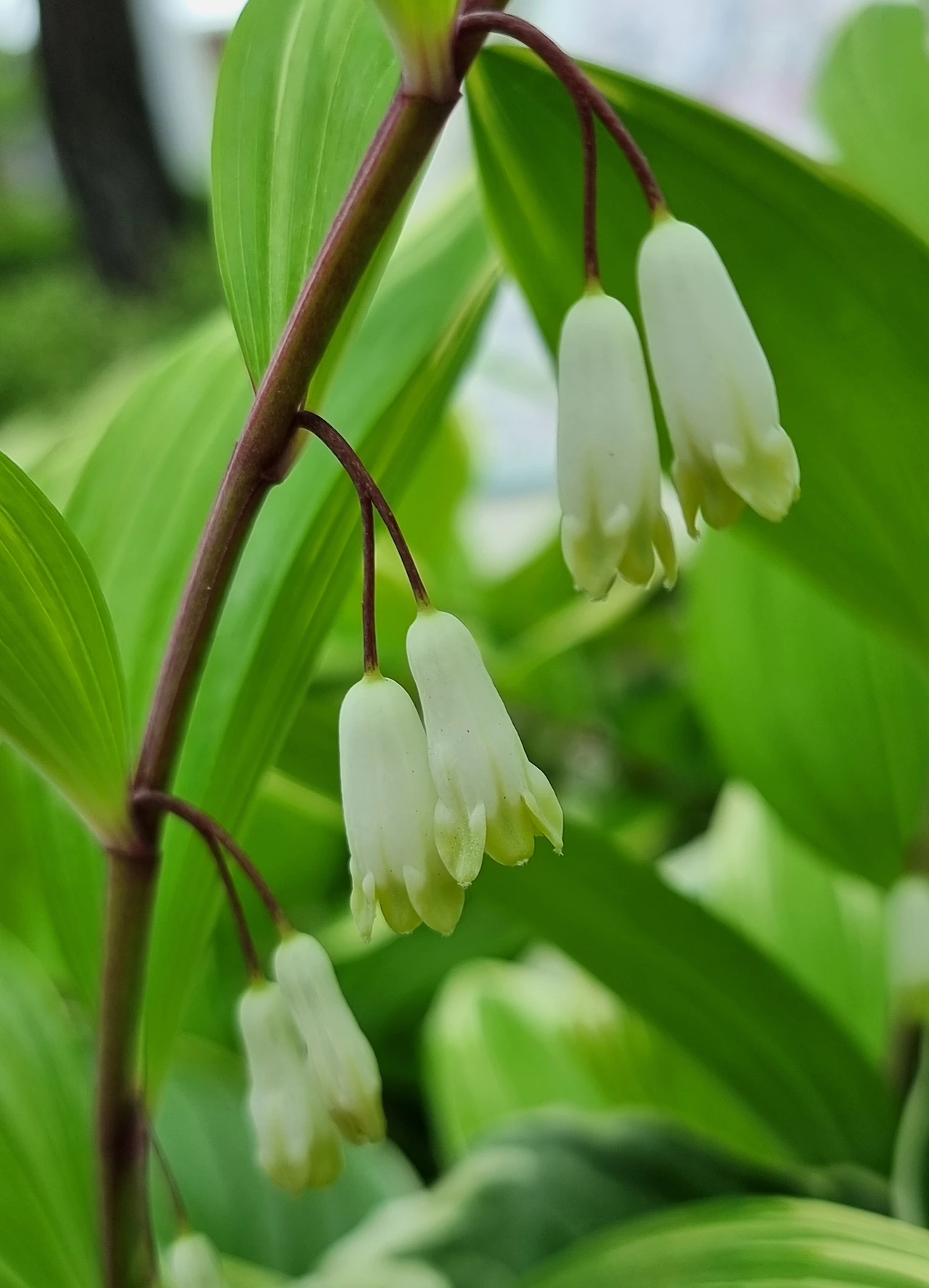 맥문동은 싹을 제법내고 있다. 비비추와 옥잠화도 뾰족하게 얼굴을 내밀고 있고 둥굴레는 예쁜 꽃이 조롱조롱 매달려 있다. 고개를 살짝 숙인 줄기에 아래로 주렁주렁 달린 모습을 보려면 꽃에 무릎끓고 고개 숙여 인사를 해야 눈맞춤을 할 수 있다.