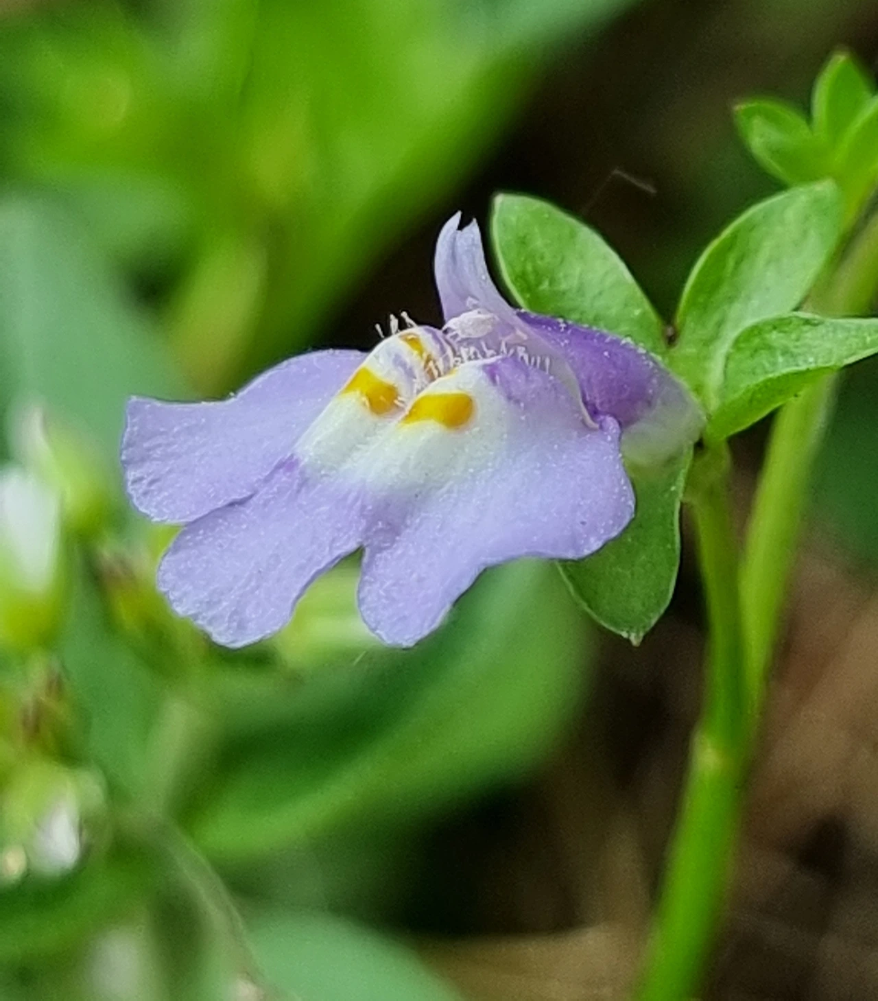 처음으로 내 눈에 띈 꽃이 보인다. 주름잎이다. 흔하지 않은 풀이라 내 눈에 처음으로 들어온 것이다. 연한 보라색 꽃이 총상으로 달렸다. 화관이 두 개로 가라진 다음 아랫입술은 다시 3개로 갈래지고 중앙 갈래 조각에 2줄의 황색선이 보인다. 깊숙이 수술이 보인다. 꽃받침으로 쌓여 있다. 한참을 이리저리 살펴볼 수 있었다. 잎이 도란형이고 둔한 톱니가 보이고 옆면이 주름이 져있는 모습이다.