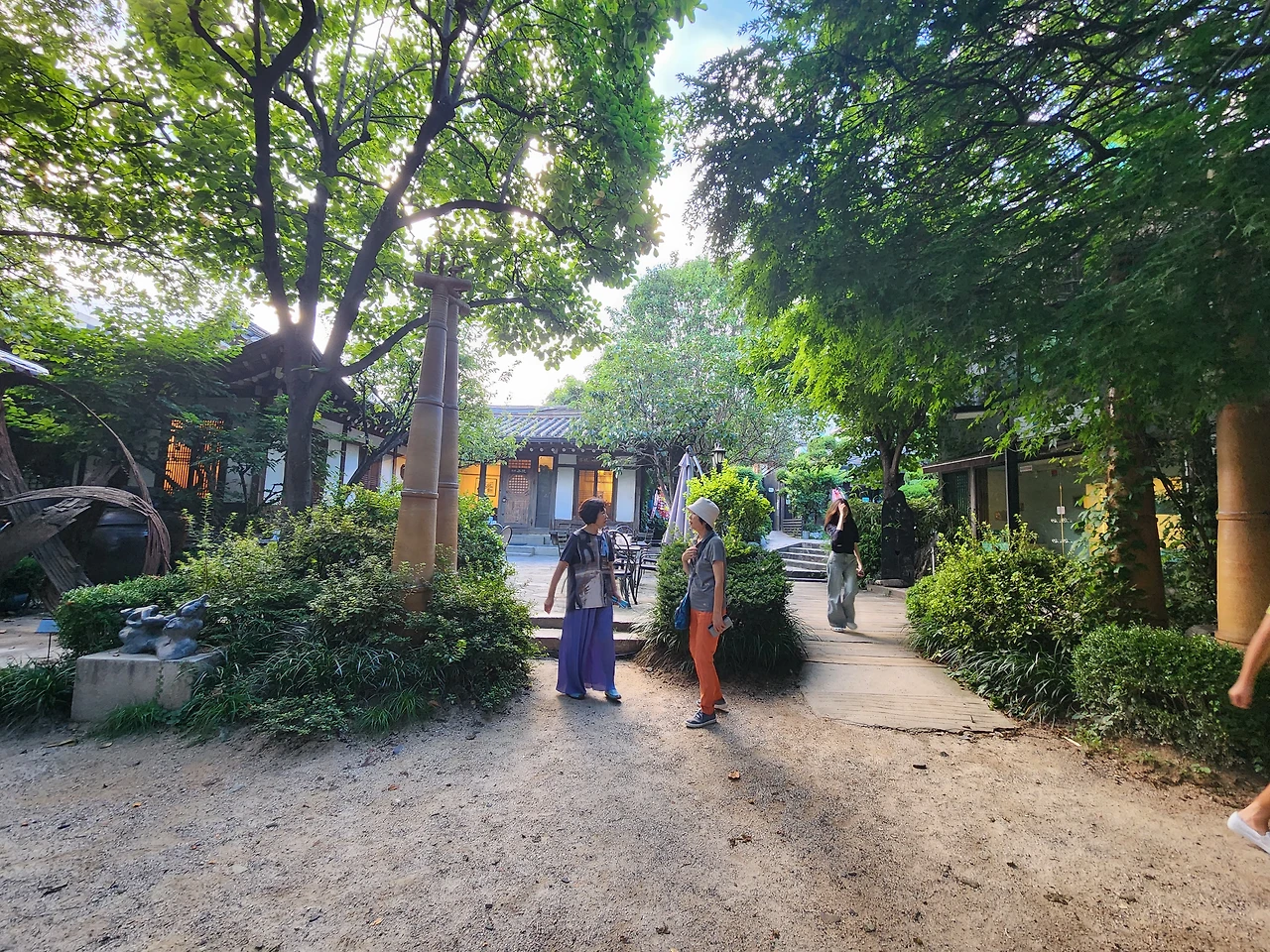 혼자만 또 가겠다고 하기도 분위기 깰 것 같아 줄 서서 먹는 미슐랭인 만두집으로 갔다. 이곳까지 스카우트 외국인들이 점령하고 있었다. 좋은 일이니 기다리기로 했다. 기다리며 보니 사진 포스터가 크게 걸려있다. 안 닮은 것으로 봐서 시어머니와 며느리 같았다. 그런데 시어머니는 까실한 여름 모시옷을 입고 있었다. 며느리는 겨울 공단 한복을 입고 옷고름도 틀리게 매어 있는 걸 쳐다보며 우리끼리 갑론을박했다. 포스터 사진 찍자고 하니 여름 한복이 없는 며느리가 아무 옷이나 입고 나와서 찍었나 보다 하며 ‘참 우리도 별 할 일 없으니 이런 것까지 눈에 띈다’고 웃었다.