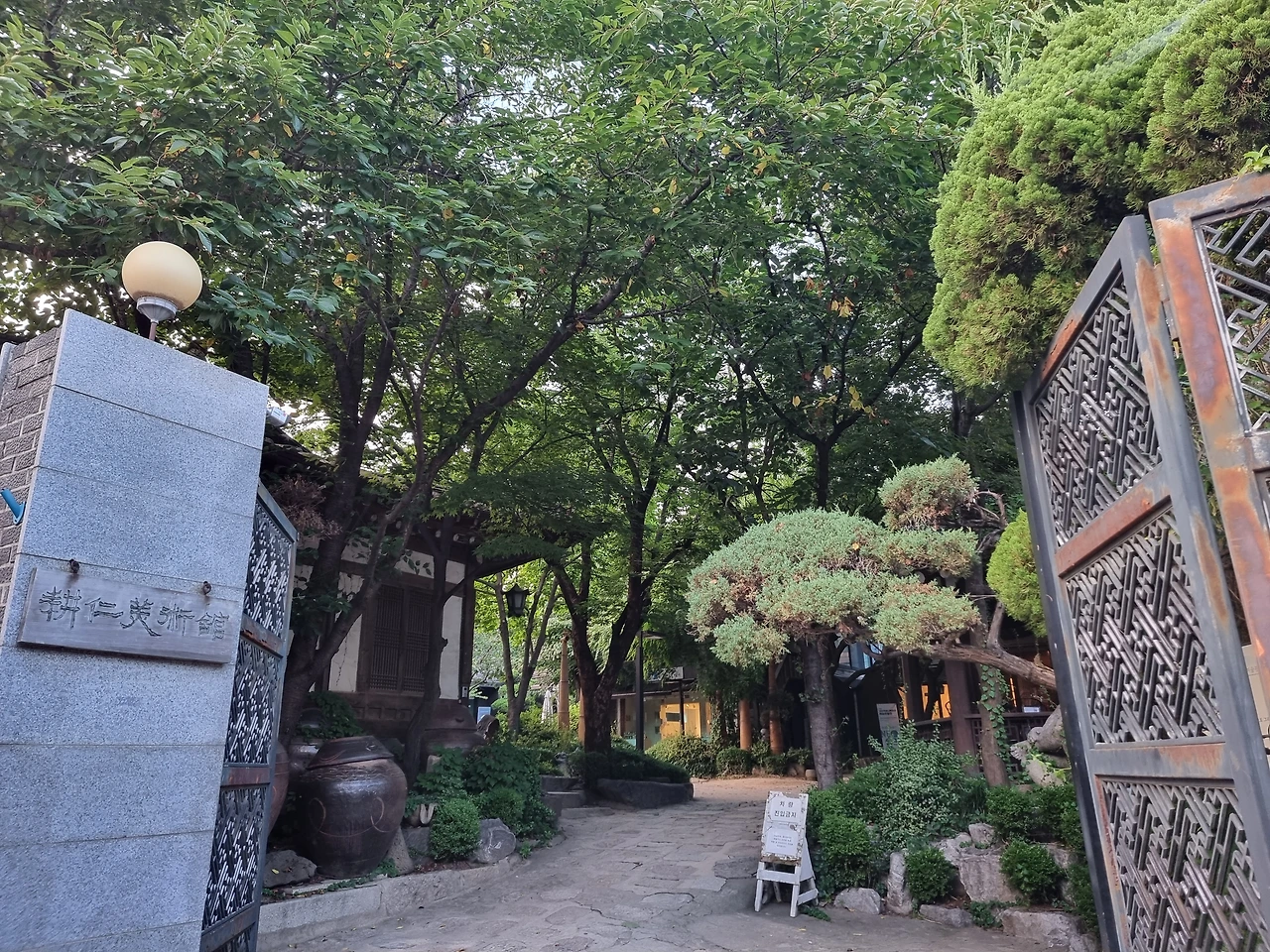 그 식당 앞인 경인 미술관에선 아직 전시회를 하고 있었다. 한 명이 줄 서서 기다리고 있고, 3명은 미술관에 들어가서 전시회를 둘러볼 수 있었다. 6개의 전시관과 찻집으로 구성되어 도심을 찾는 관광객들에게 휴식 공간으로 잘 활용되고 있는 곳이다. 불이 하나씩 밝혀지기 시작하고 있었다.