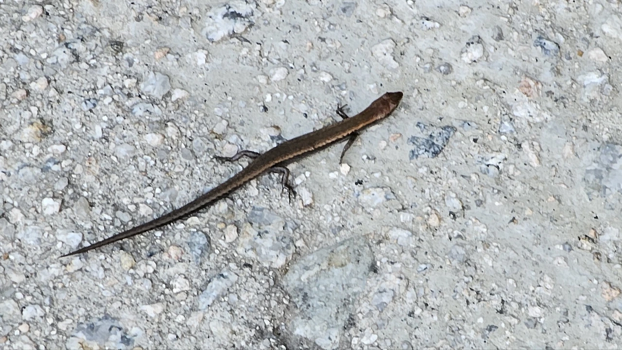 긴꼬리를 달고 기어가는 도마뱀