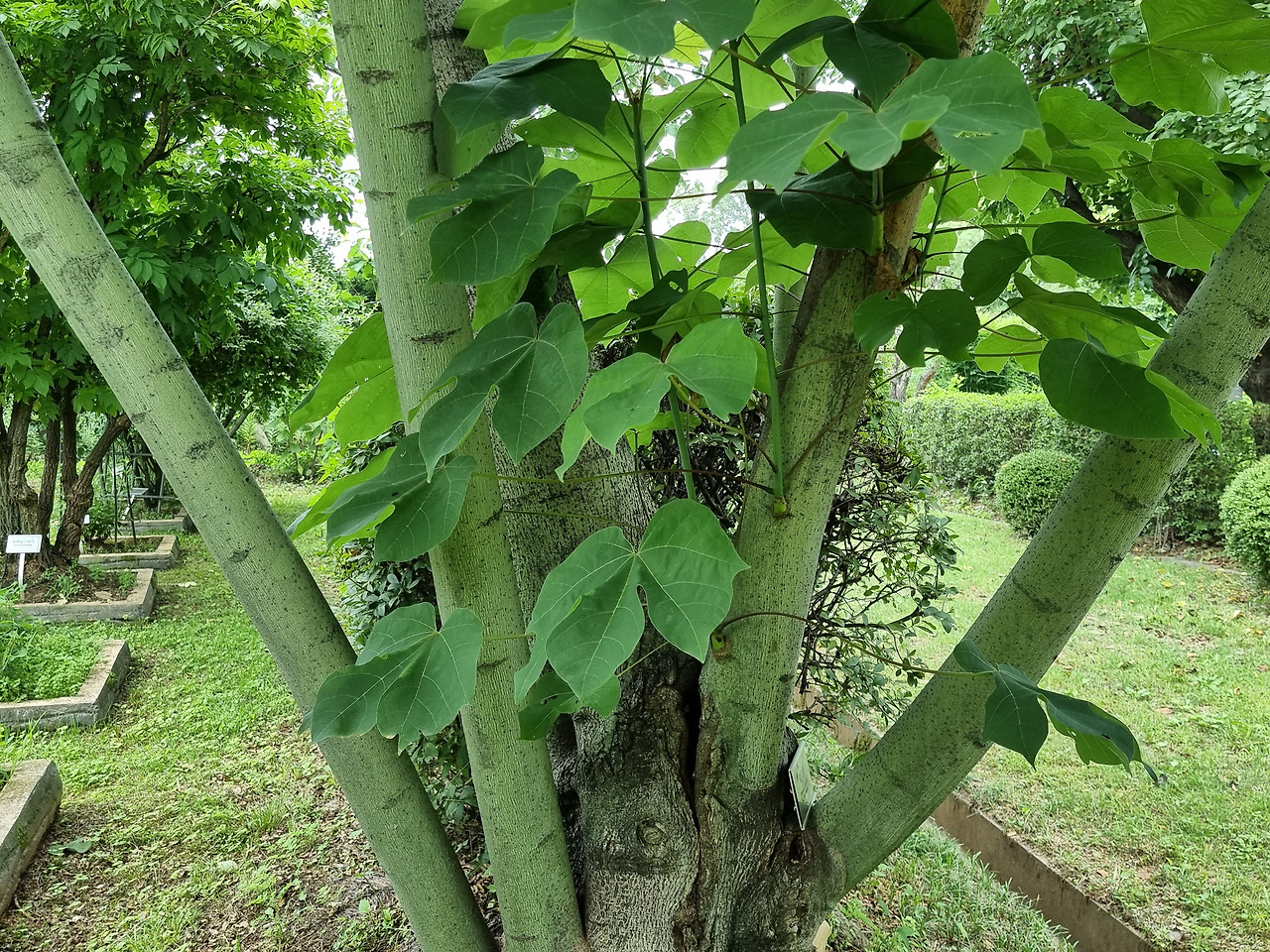 벽오동을 찾아다니기 참 힘들었다. 그만큼 보기 힘들다는 의미이기도 하다. 어렸을 때는 흔하게 봤던 나무인데 갈수록 사라져 가나보다. 서울대학교 약학대학에서 운영하는 고양시에 약초원이라고 있다. 그곳에서 가장 멋진 벽오동을 발견할 수 있었다. 숲해설가 동기분이 그곳에 계셔 귀한 기회를 얻을 수 있었다. 모든 식물은 인간에게 이롭겠지만 이곳 약초원의 식물들은 서울대 약학대학 학생들이 계속 관찰하며 살피고 있다고 하니 이해가 잘 안 됐지만 양약도 식물에서 대부분이 나온다는 사실을 되새기니 한의대가 아니라도 약학대학생들도 식물에 관심을 두는 것이 이해가 됐다. 우람한 푸른 기둥의 나무는 가장 넓은 잎을 달고 봉황이 깃들기를 기다리는 모습으로 서 있는데 너무 멋져 감탄하며 사진 찍느라 시간 가는 줄 몰랐다. 다른 식물들도 다들 귀하고 멋지지만 이런 나무는 봉황 덕분인지 성스러운 느낌이 든다. 열매는 2년 동안 몇 번의 방문으로 겨우 찍을 수 있었다.
