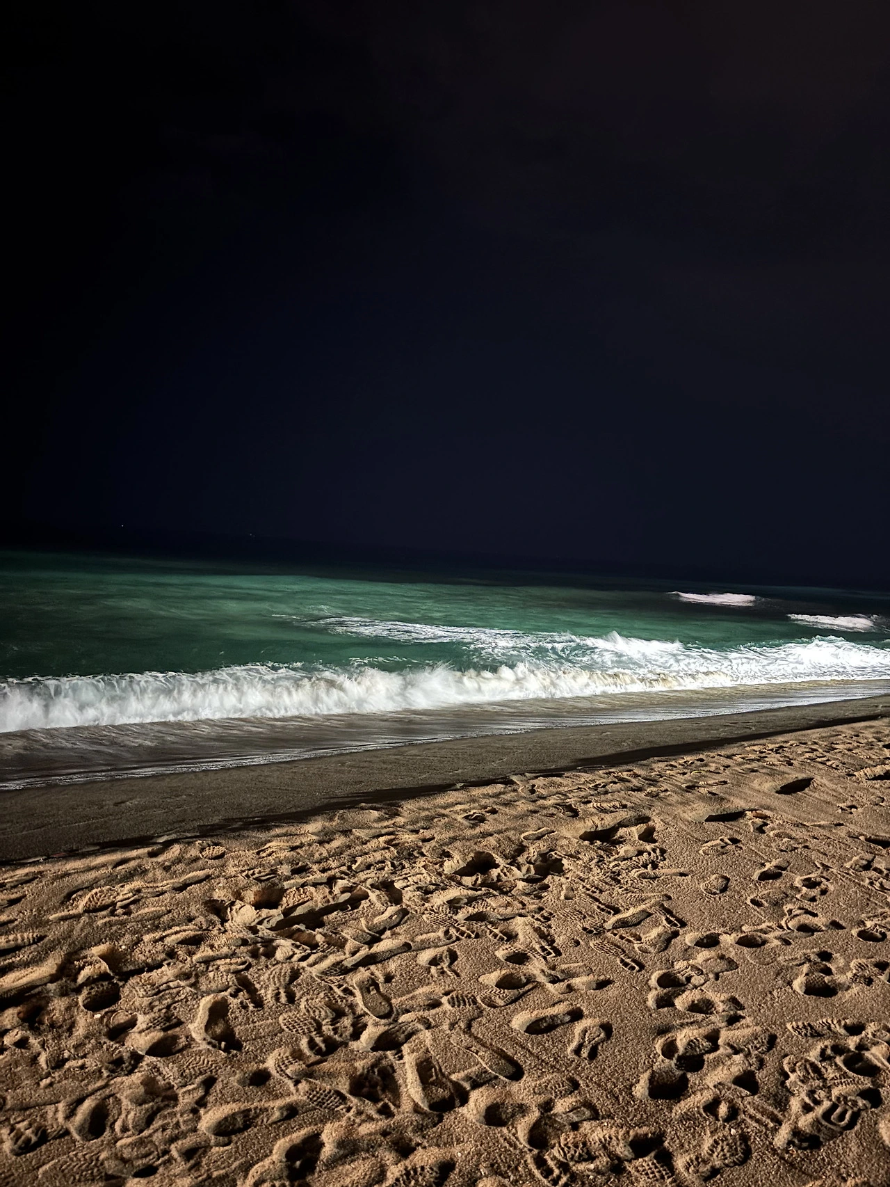 밤바다에 깜박이는 등대가 여기가 어딘지 길잡이기 되어주고 있었다. 파도가 겹겹이 밀려오고, 모래사장이 붙드는 발을 빼내며, 해안가를 걸었다.