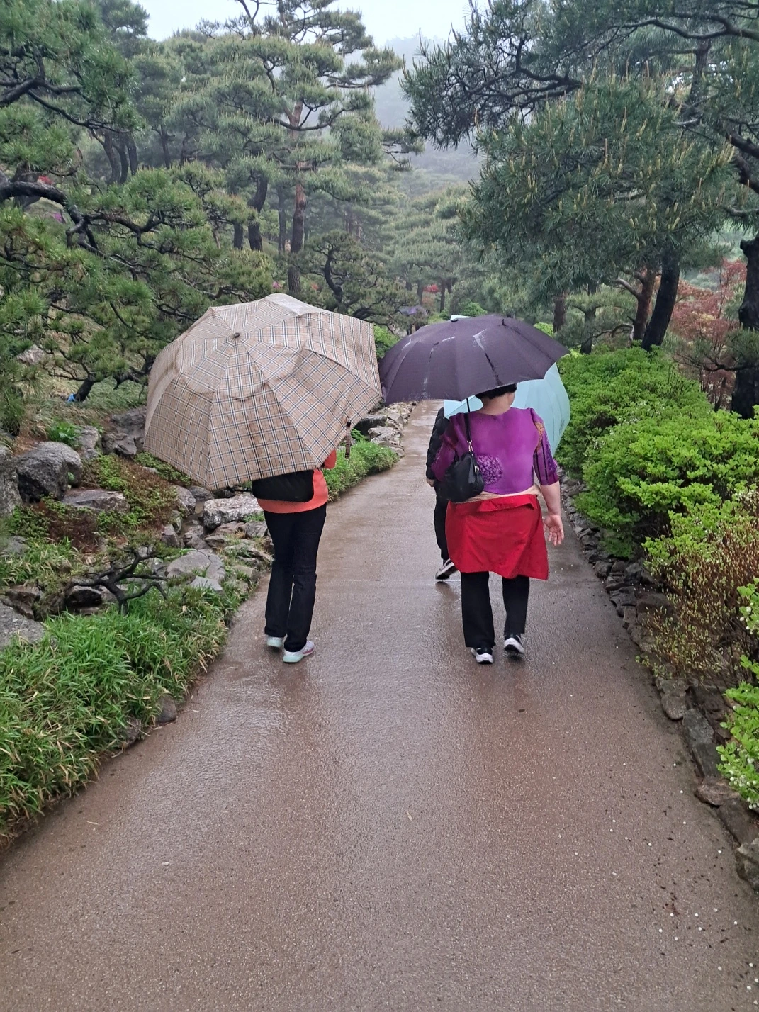 4월의 화담숲으로 친구 11명이 나들이를 갔다. 싱그러운 푸른 나뭇잎, 형형색색의 꽃들이 있지만 오늘은 비까지 내리니 가까운 산에 온 느낌마저 든다. 서울에서 곤지암까지 가려면 그리 먼 거리도 아닌데 우리는 여행사에서 제공하는 차로 가야 하기에 새벽부터 서둘러야 했다. 내 마음은 이왕에 나선 거 좀 더 멀리 가고 싶었다. 입구부터 많은 사람들이 줄을 서있다. 일상을 벗어난 우리들은 비가 와도 마냥 즐거웠다. 우산을 쓰고도 웃음이 끊이지 않고 걷고 또 걸었다.