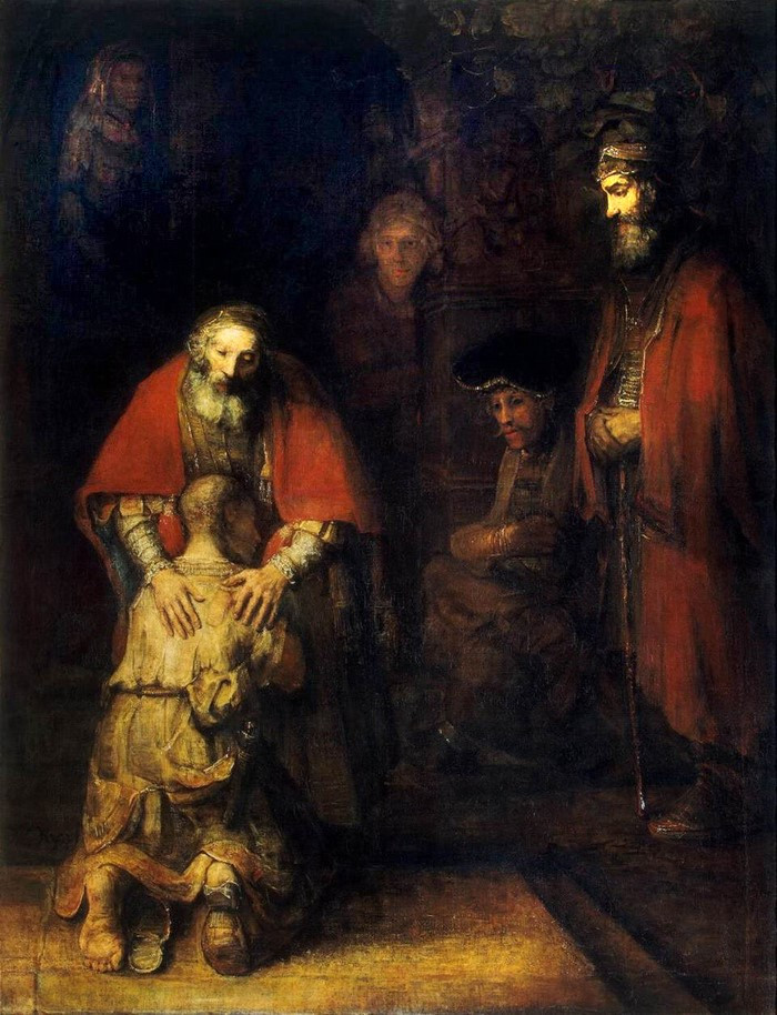 헨리 나우웬이란 작가는 렘브란트가 그린 "탕자의 귀환"이라는 이 그림을 오랫동안 주시하면서 받은 영감으로, 동명의 책을 서술하였습니다. 한 번쯤 읽어 볼만한 귀중한 책입니다만, 이 책의 저자와는 달리 우리는 이 그림을 얼마동안만이라도 주목하여 보기 힘들어합니다. 왜 그럴까요?