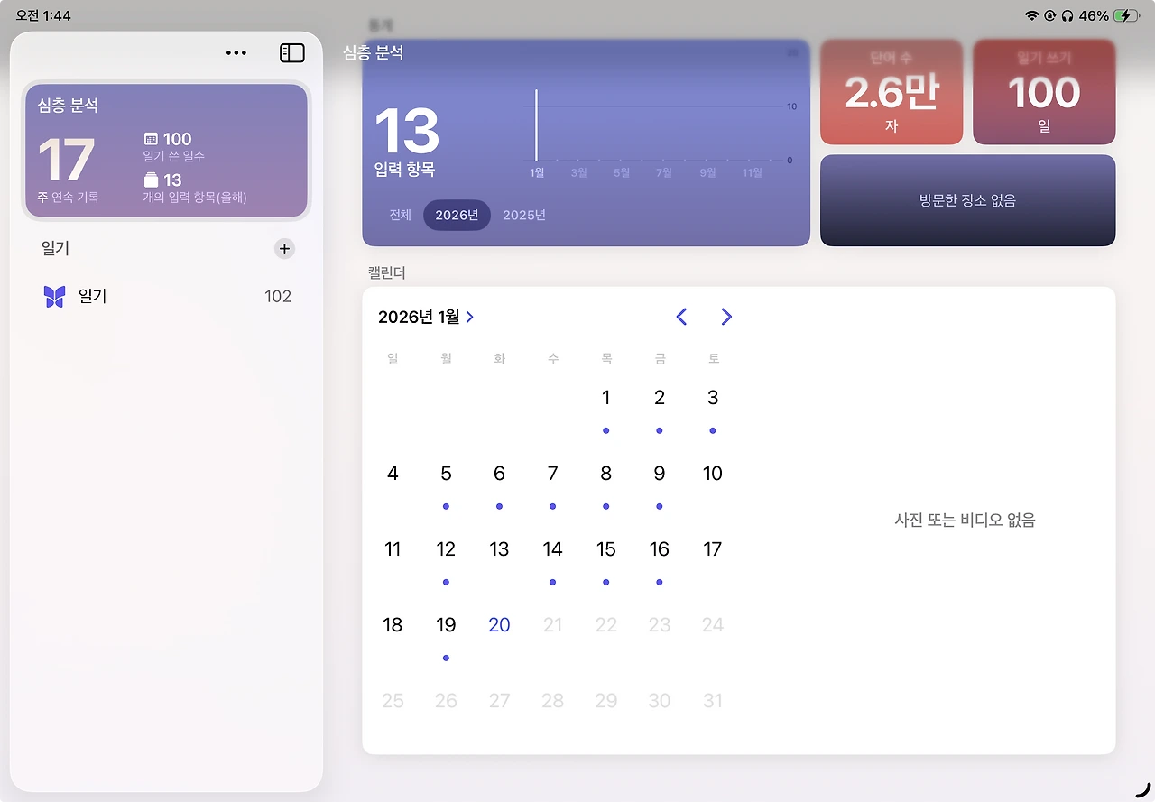 100일의 일기. 이 숫자들이 쌓여 막연한 불안은 관리 가능한 데이터가 되었고, 무채색이었던 제 삶에 선명한 빛이 돌기 시작했습니다.