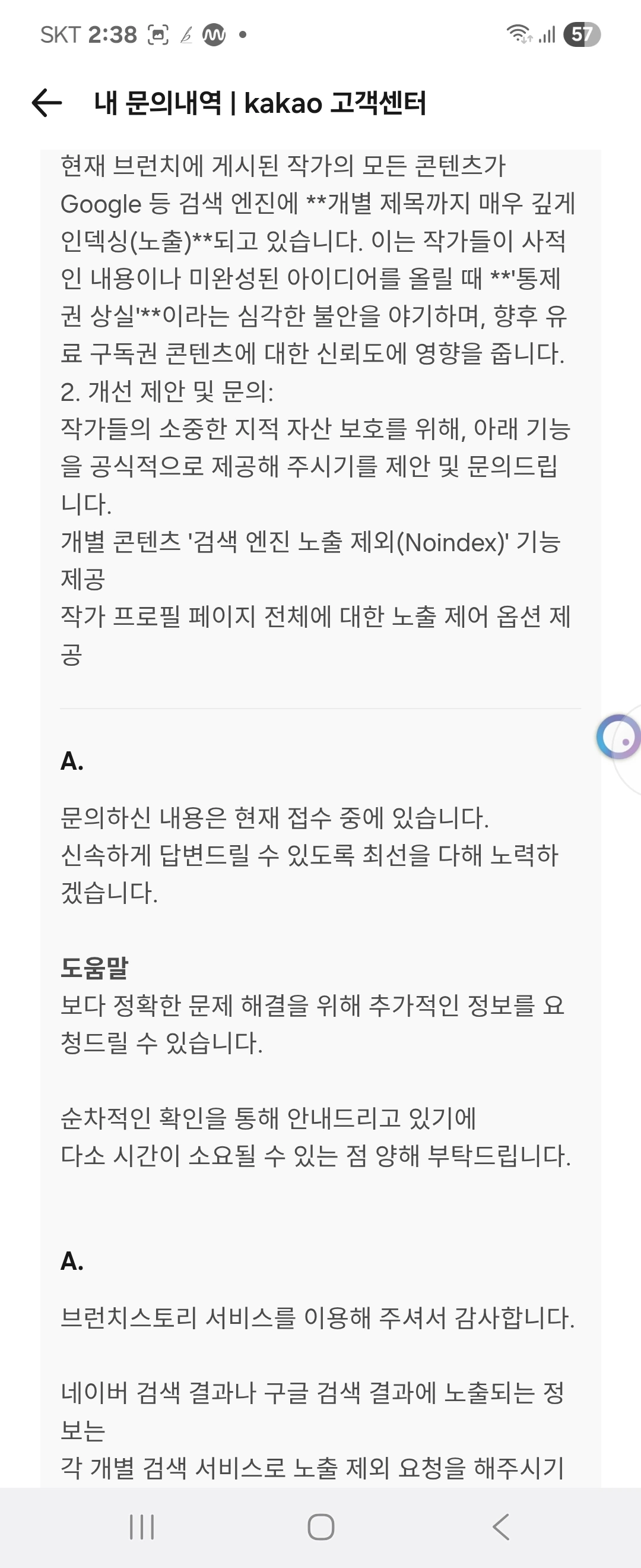 A. 브런치스토리 서비스를 이용해 주셔서 감사합니다.
