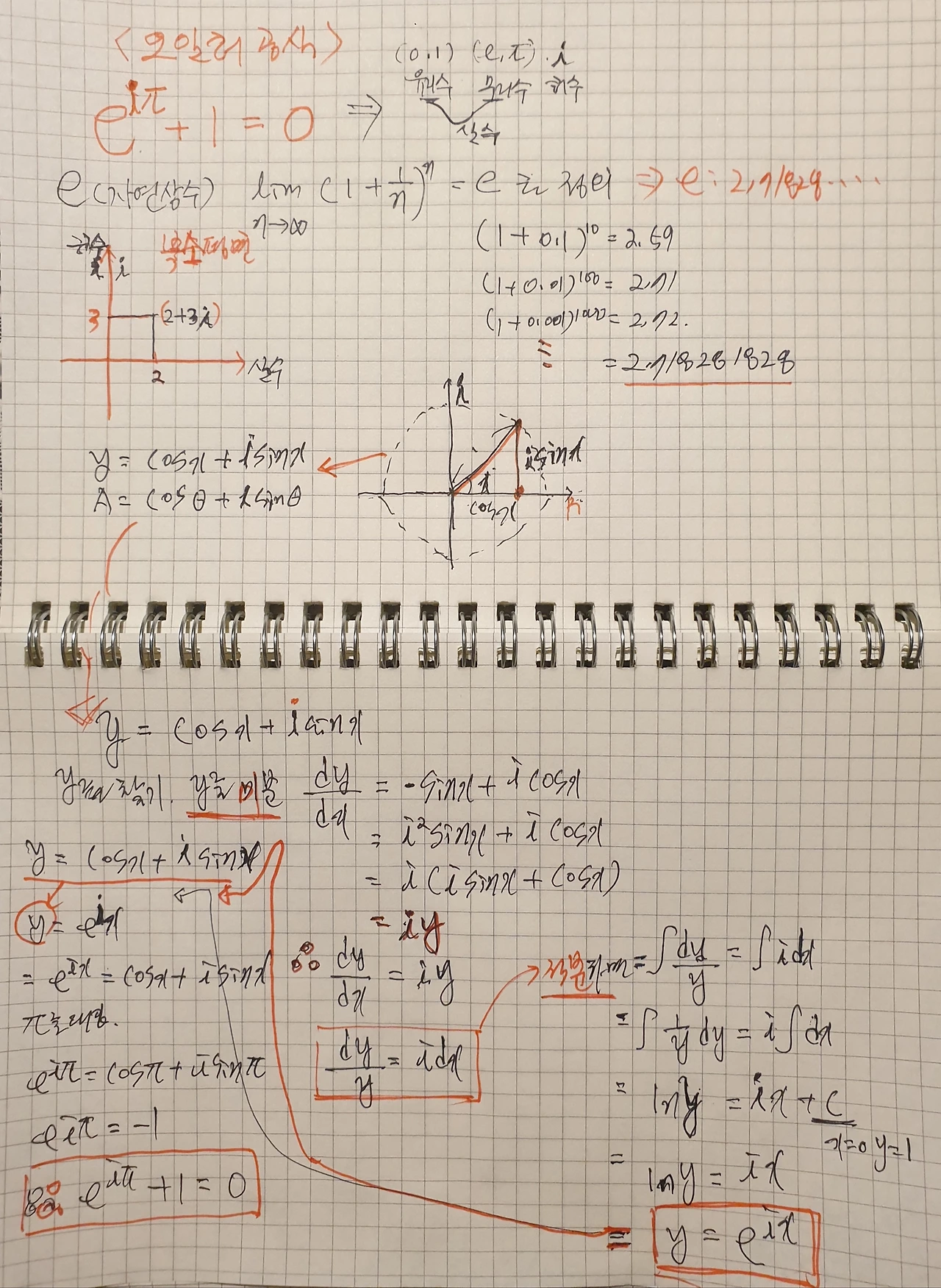 머리가 복잡할 때, 나는 가끔 수학 공식을 풀어본다. 뭔가 아이러니하지만, 숫자와 기호가 정리되는 과정 속에서 마음도 정리되는 기분이다. 오늘은 특히 오일러 공식을 적어보며, 그 아름다움을 다시 한 번 느껴본다.