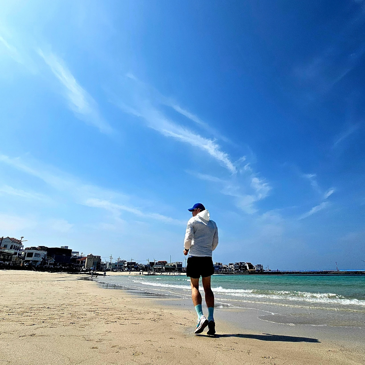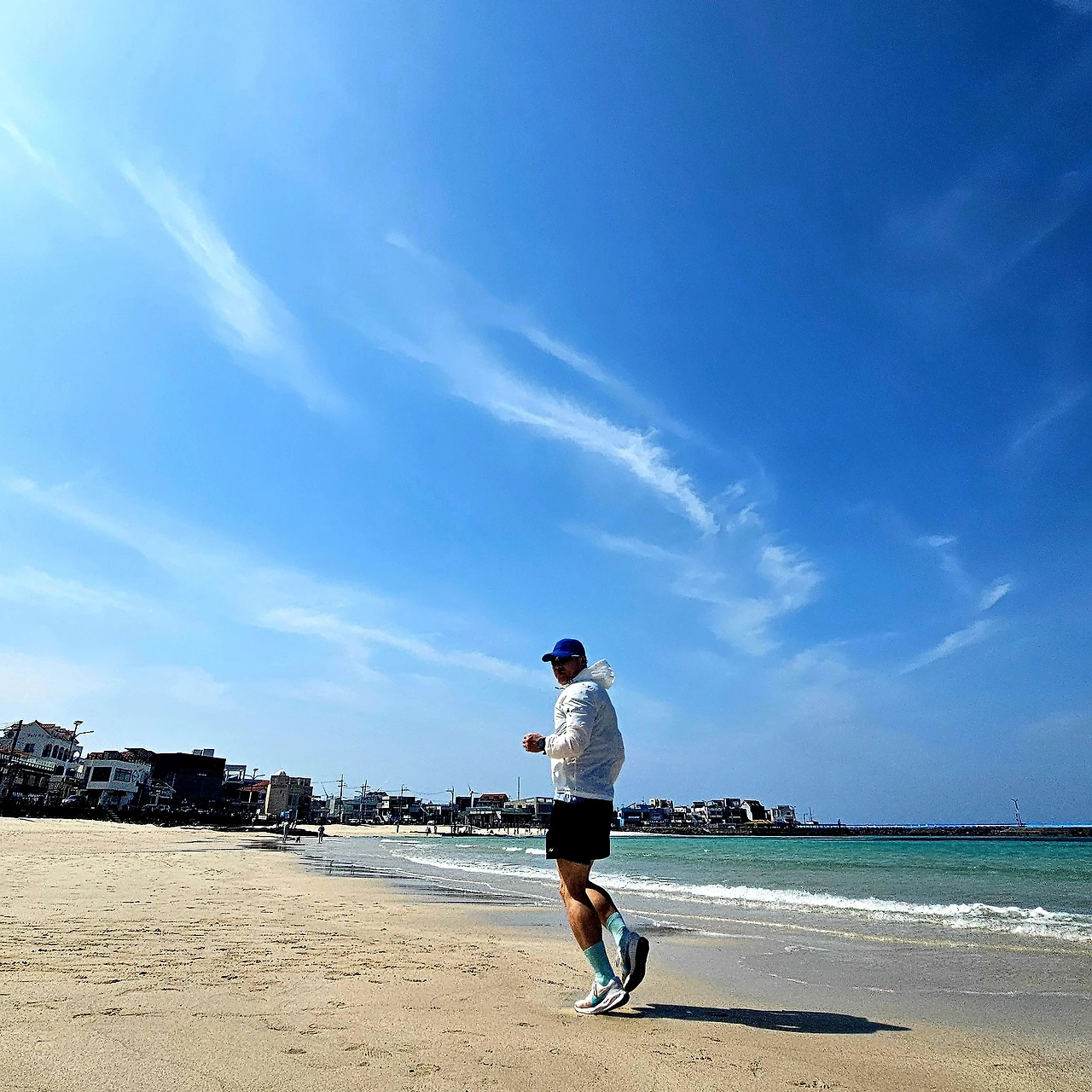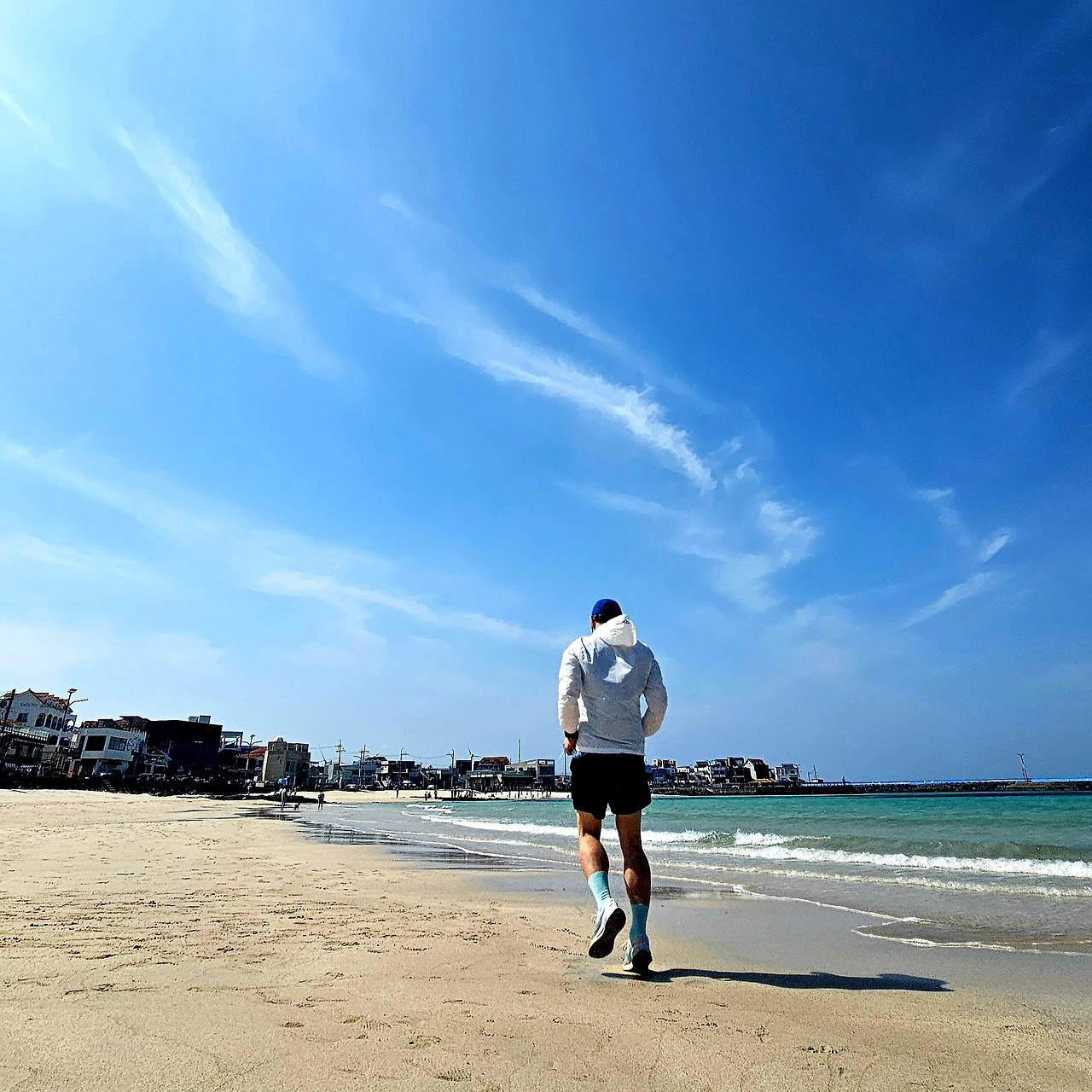 오늘은 지인과 함께 해변을 달린다. 같은 방향을 바라보며 나란히 달리는 그 느낌이 참 좋았다. 서로의 심장박동과 호흡이 어느 순간 비슷한 리듬을 타기 시작하면서 말 없이도 교감할 수 있다는 건 함께 뛸 때만 느낄 수 있는 특별한 선물 같다.