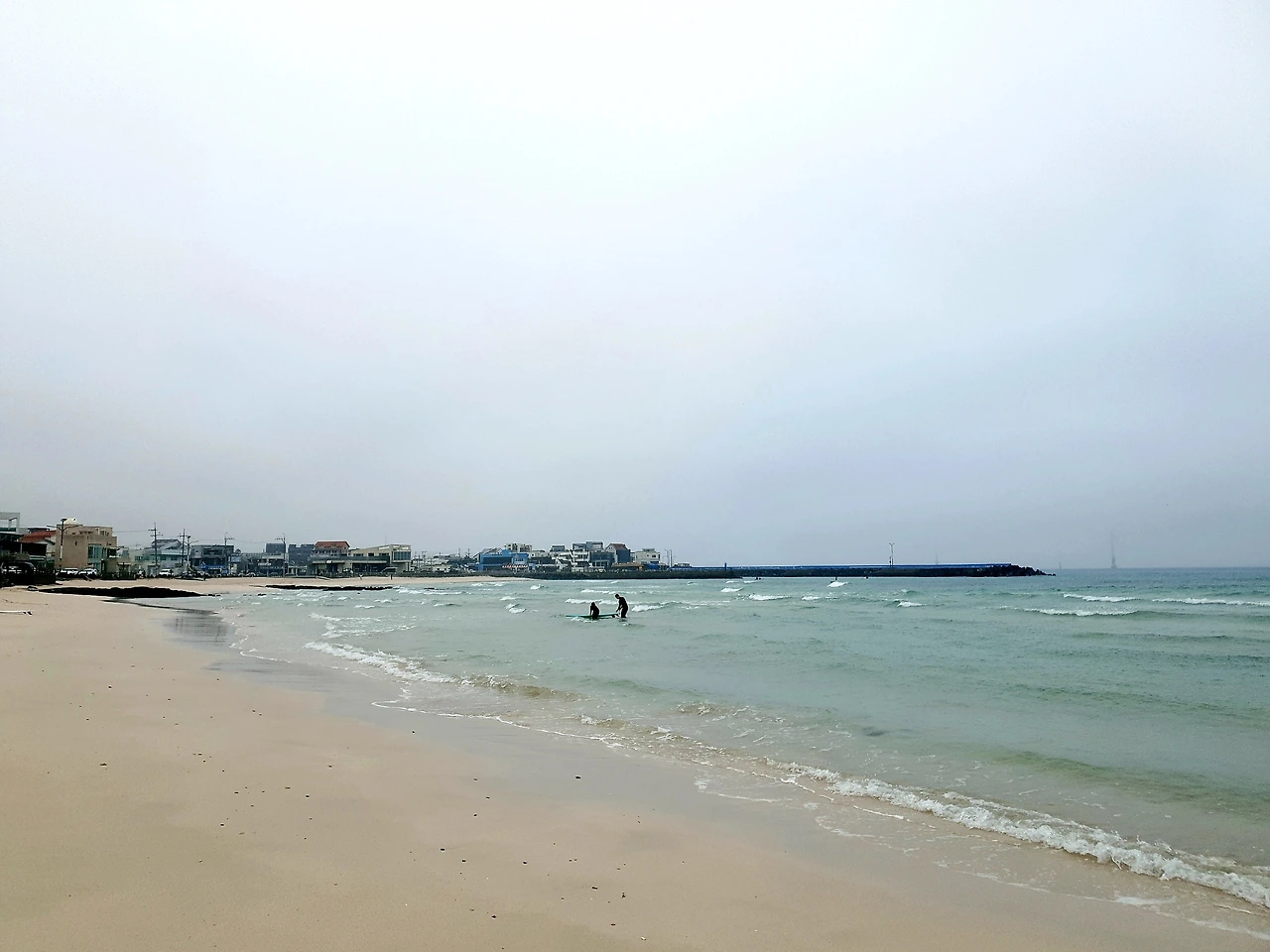 짙은 안개 속에서도 서핑을 즐기는 사람들을 보며 생각에 잠긴다.