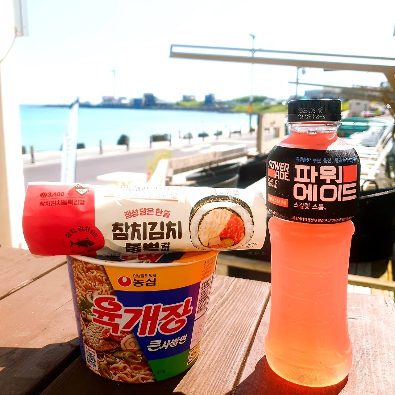 소박한 아점 컵라면과 김밥 한 줄로 허기를 달래고, 곧장 바다에 몸을 던진다. 물결은 쌓인 열을 식히고, 마음의 소음을 조용히 씻어낸다. 여름의 끝자락에서 건진 것은 속도가 아니라 깊이였다.