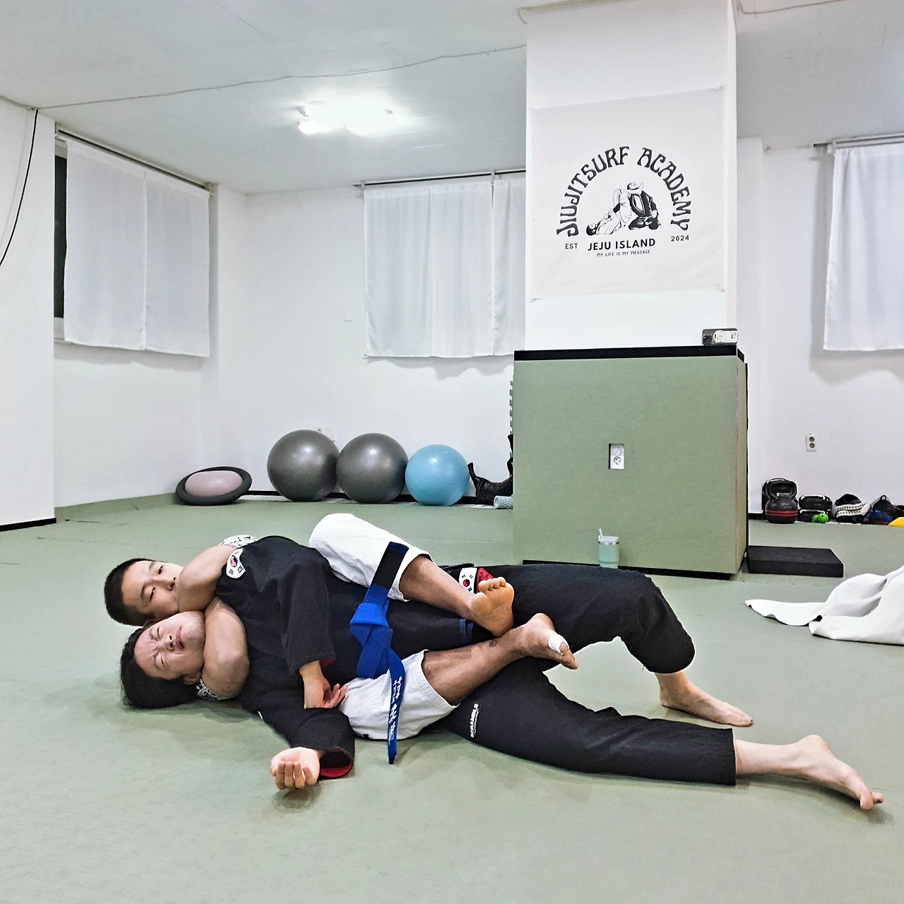 상대의 등을 잡고 등 뒤에서 숨을 조이거나, 팔 하나를 고립해 굴복을 이끌어내는 기술. 반복할수록 느껴지는 건 단순히 힘으로 밀어붙이는 것이 아니라, 미세한 각도와 타이밍으로 균형을 흔드는 섬세함이었다.