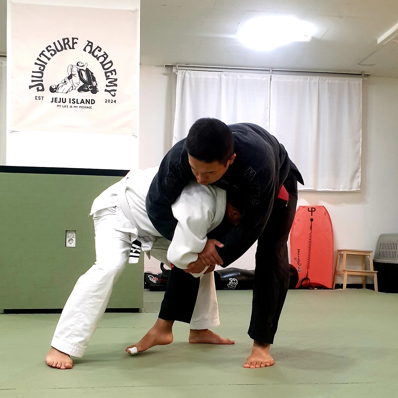 오늘의 주짓수 훈련은 스탠딩에서 싱글레그 테이크다운 디펜스, 그리고 버터플라이 가드, 윌리엄스 가드에서 트라이앵글 초크까지 이어졌다.