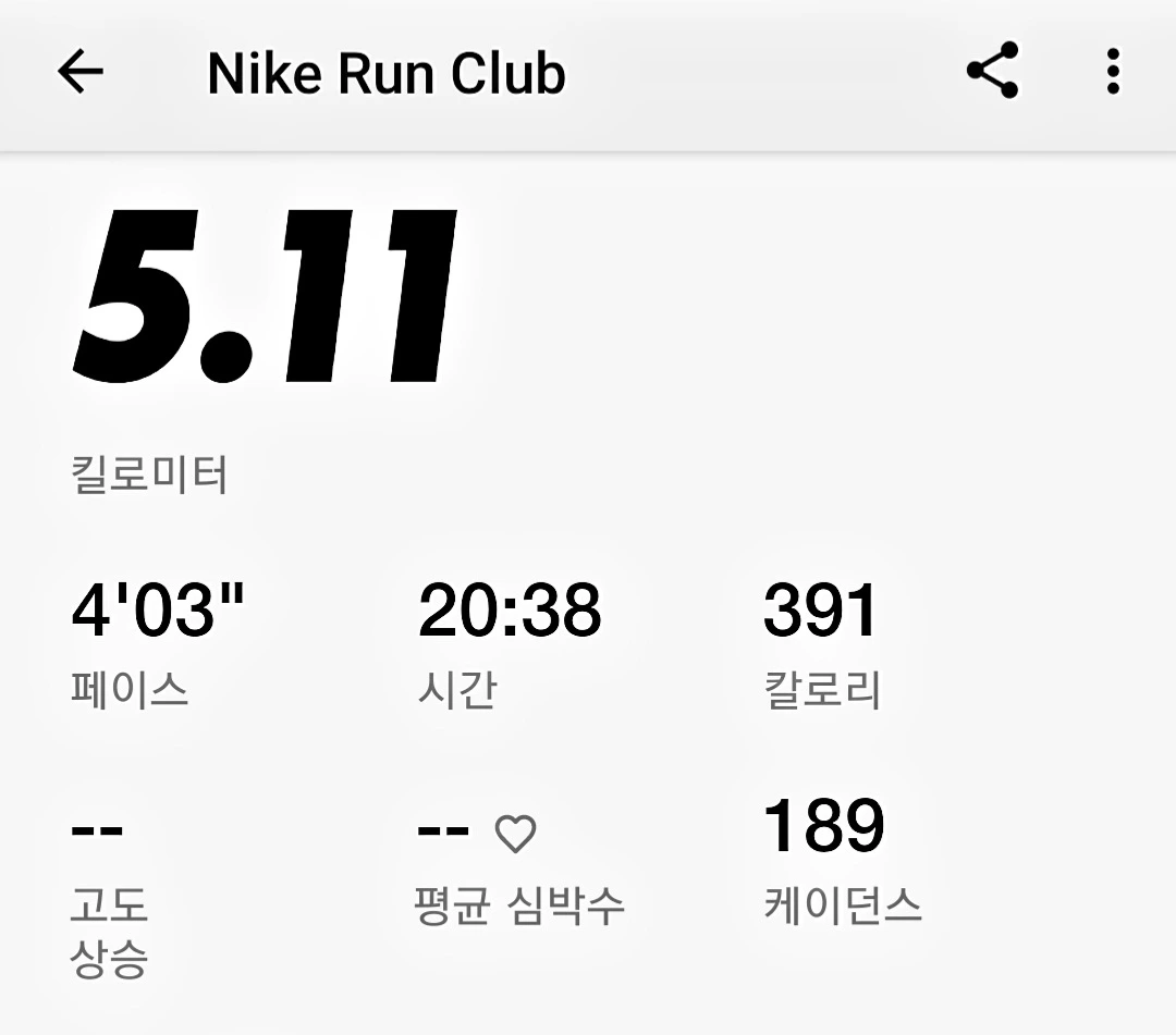 오늘도 천천히, 1km를 7~8분 페이스로 뛰려고 마음먹었는데 시계에는 1km 4분 03초라는 숫자가 떴다.