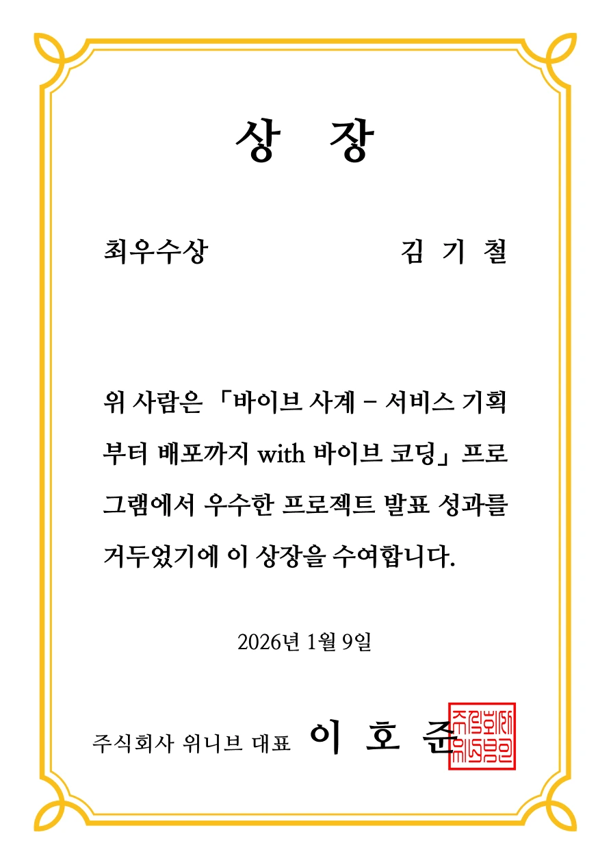 위니브 바이브코딩 1기 캠프가 열린다는 소식을 접했고,