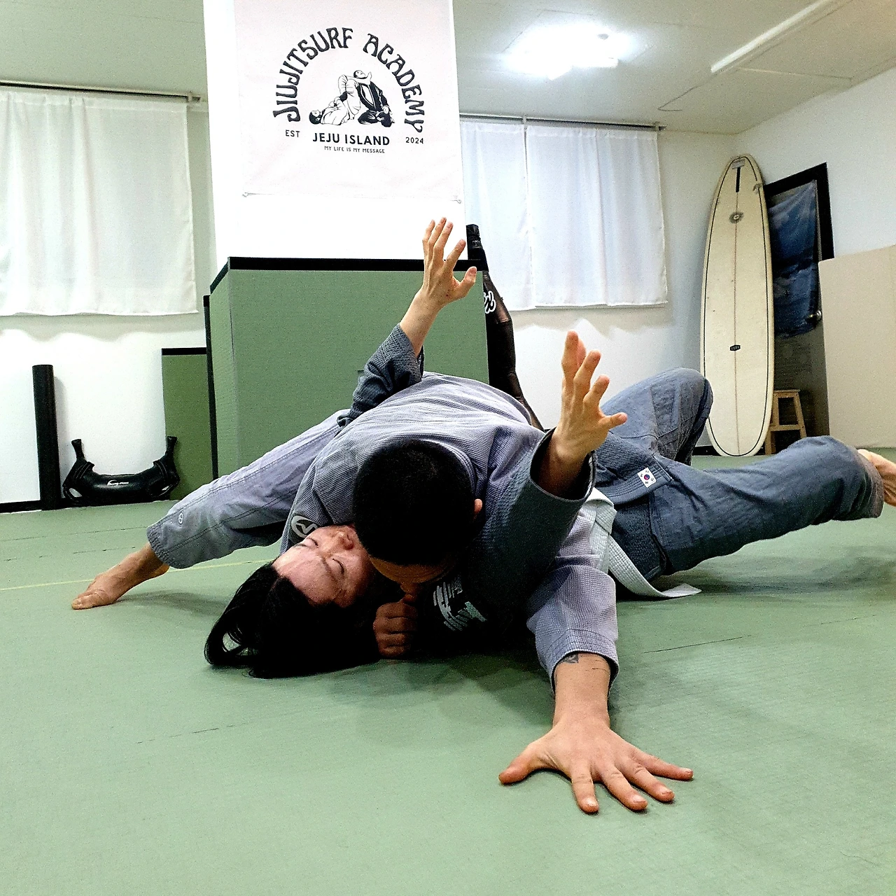 주짓수도 마찬가지다. 힘으로 상대를 억누르는 것이 아니라, 중력의 원리를 이해하고 활용해야 한다. 내가 힘을 빼고 중심을 낮출 때, 상대는 자연스럽게 무너진다. 무리하게 맞서기보다는 흐름을 타는 것, 그것이 진정한 강함이다.