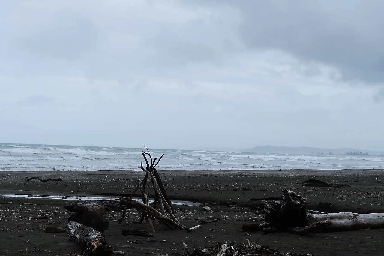 해변가에는 여기저기서 날아온 나무와 나뭇가지들이 널부러져 있었다.