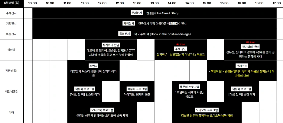 노란색으로 칠한 부분은 내가 직접 가서 구경하고 강연을 들었던 스케줄이었다.