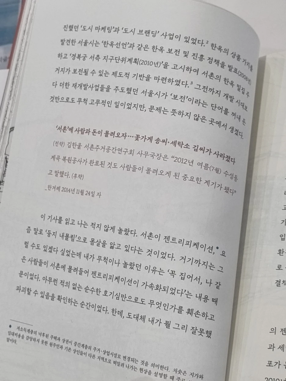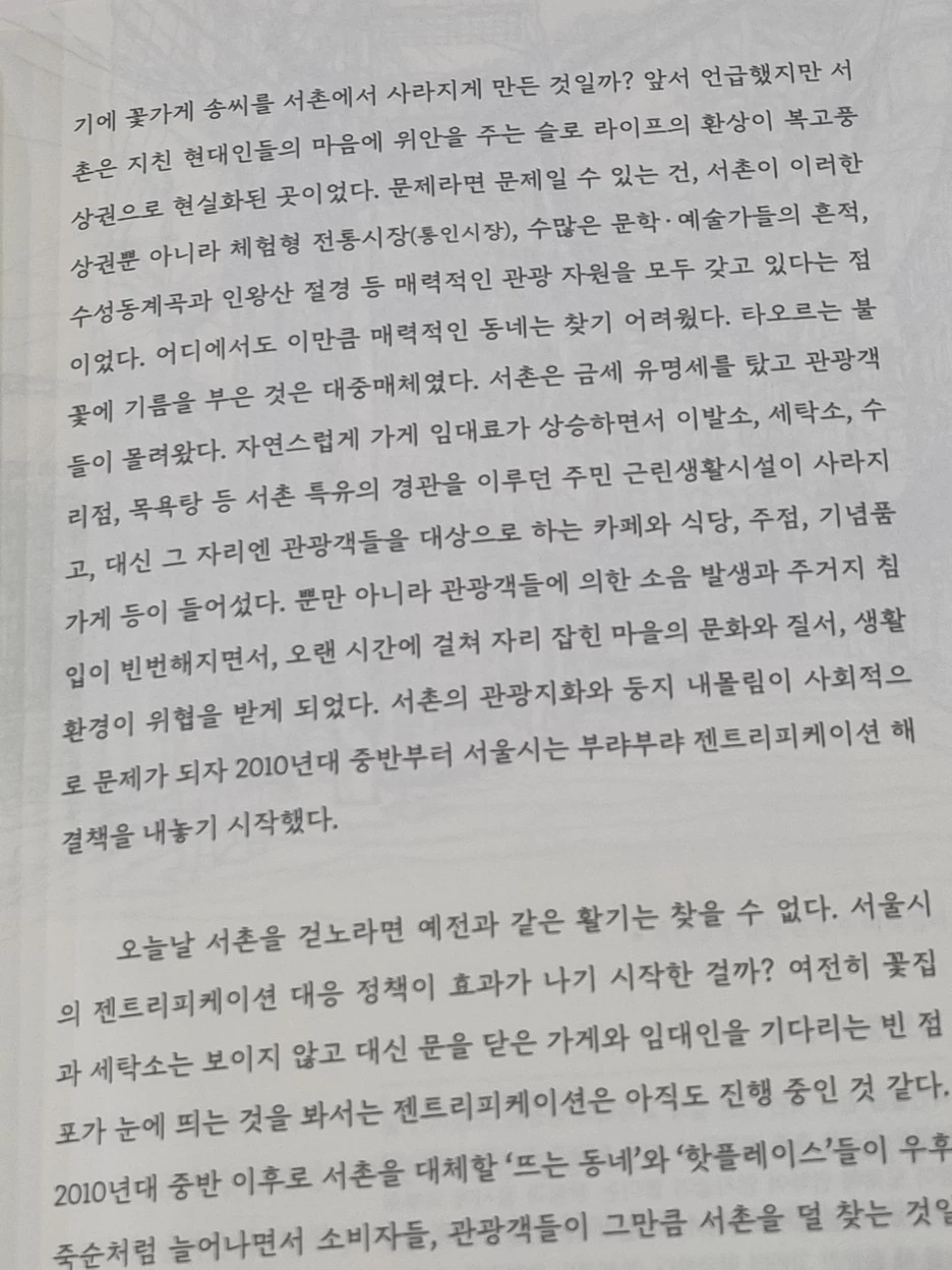 글쓴이는 '나 같은 사람들이 서촌에 몰려들어 젠트리피케이션이 가속화되었다.'라고 콕 집어서 나를 언급하는 듯했다.