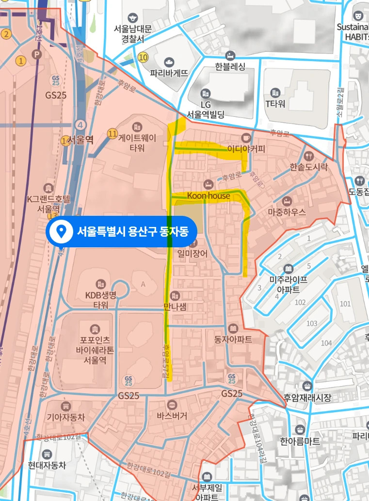 서울특별시 용산구 동자동, 서울역 10,11번 출구 인근