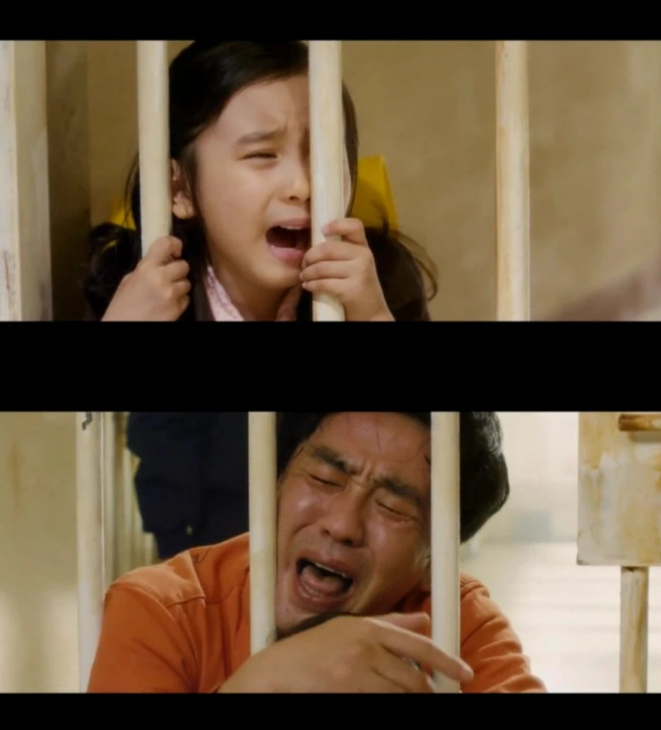 서에서 조사 중인 아빠 용구를 하염없이 기다리는 딸 예승이 <7번 방의 선물> 중에서