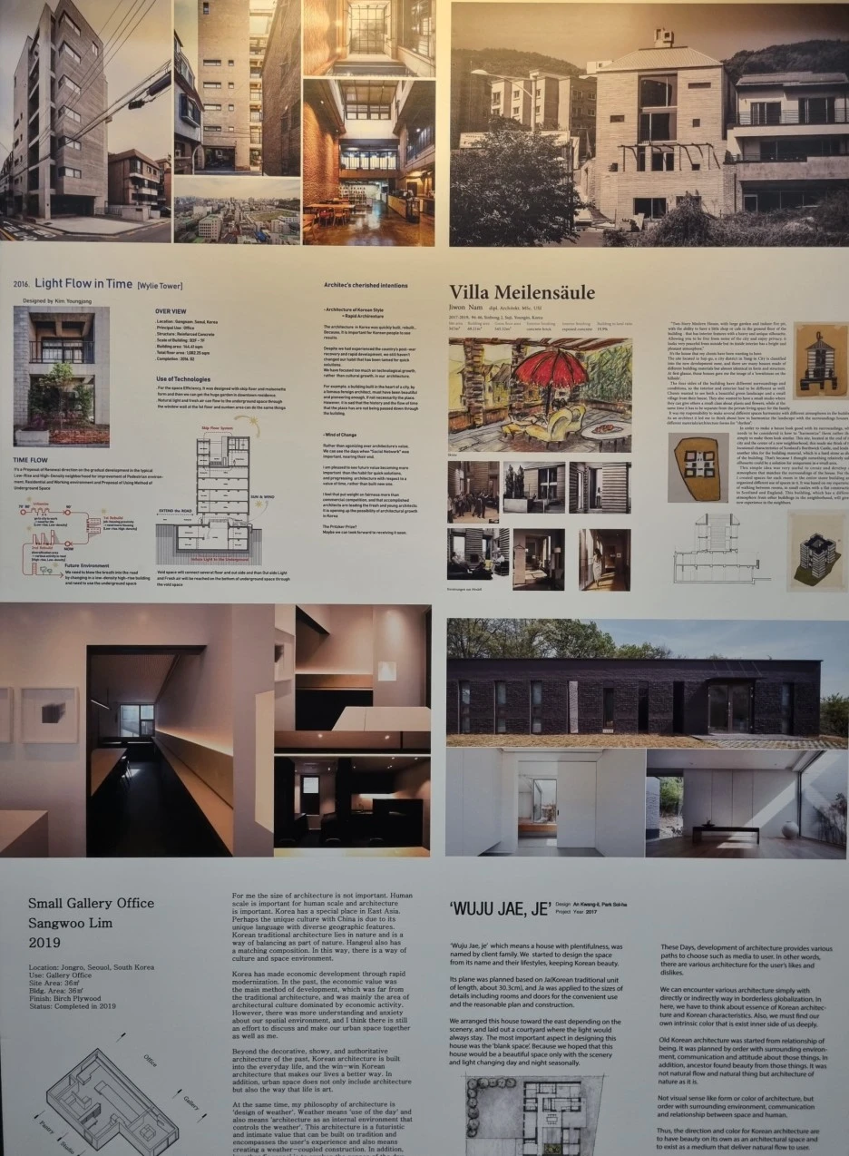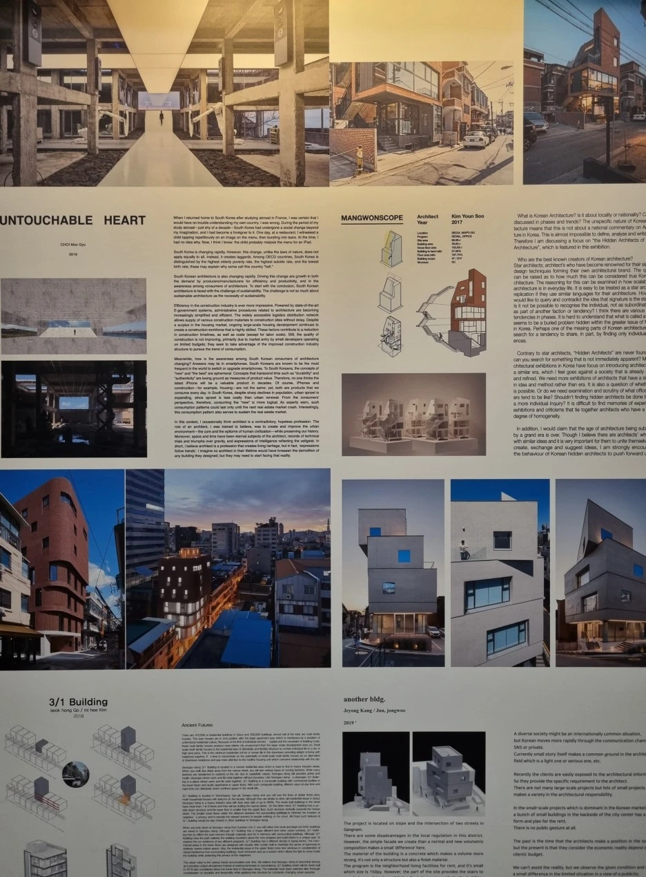 공간적 아름다움을 가지려면 사람의 스토리텔링이 기반이 된 장소가 어울린다. 이를테면 잠시 쉬다가도 좋을 스퀘어 형식의 의자, 배배꼬인 나선형 의자 옆으로 꼬불꼬불 하천 도랑 따라 이어진 어부들의 일적 하소연, 푸른 소나무가 뒤엉켜 그 앞으로 자리 잡은 한적한 캐빈형(오두막) 1평 남짓 쉼터 등. 상상하기 이상 제각각 표현하기 나름인 공간의 이상적 표출은 실로 아름답다. 나 또한 문득 도시재생전을 거닐면서 '공간의 사유'라는 주제에 걸맞은 아카이브 장소로 발걸음을 옮기게 되었다. 국내 사례뿐만 아니라 해외에서 허용된 미적 가치를 공간의 실용화로 표현했다는 점이 꽤 인상적이었다. 특히 아프리카 난민들을 위한 작은 쉼터는 인간애를 다시 한번 느끼게 할 또 하나의 소중한 장소임이 분명했다.