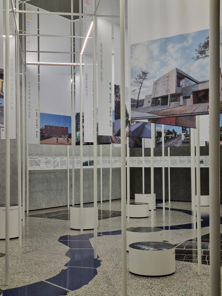 전시가 이루어지는 도시건축전시관, 또한 공공건축의 하나로, 관람자들에게 일상의 즐거움이 되길 바랐다. 전시장의 가벼운 수직의 기둥들과 천들, 원형 구조물들 사이를 거어 다니고 걸터앉아 쉬면서 산책의 경험이 되기를 기대한다.