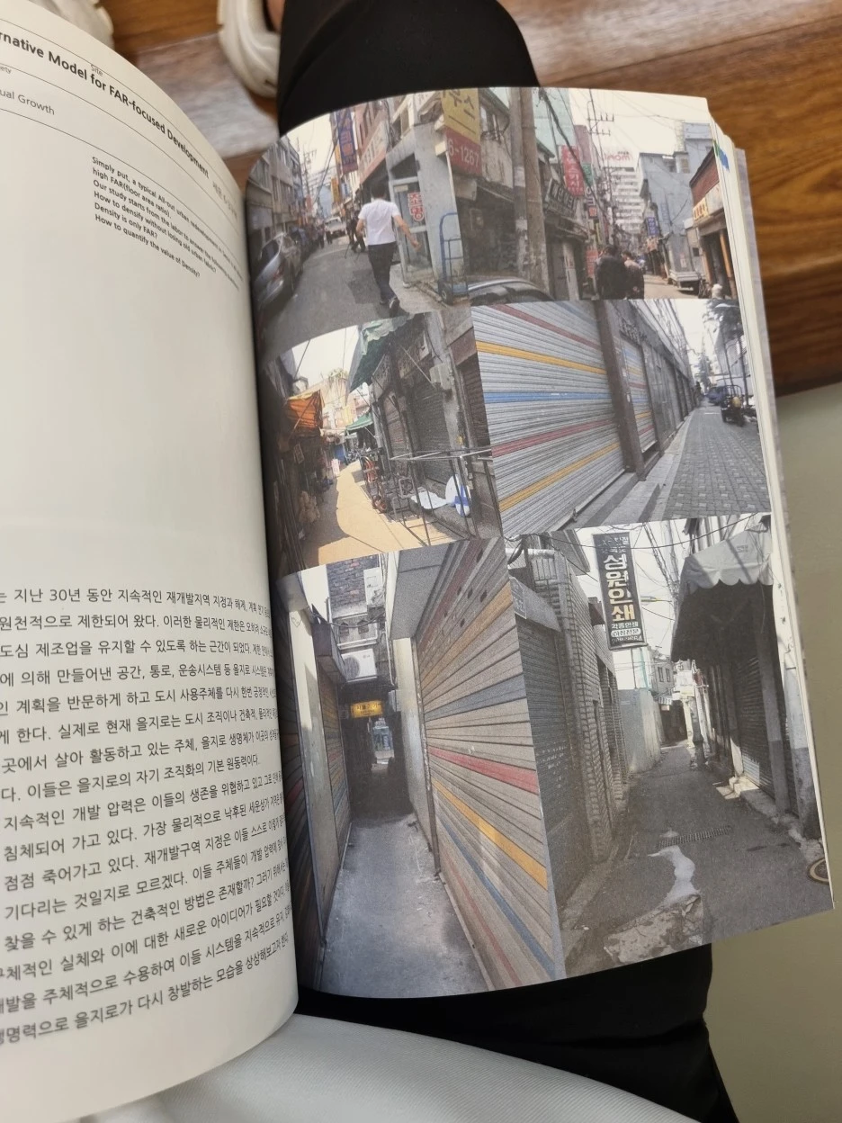 재개발 지역으로 묶여 있는 세운 재정비촉진지구는 아직 정감이 넘쳐흐른다. 매끄럽지 못하여 좁고 꼬불꼬불한 길 등 고유의 도시조직들이 남 작동하는 곳, 자연발생적인 이 길은 오래된 도시조직으로 매우 사람 중심적이다. 지나갈 수 있는 길 또한 한정적이고, 모든 길들이 실핏줄처럼 뻗어나가 이루어진다. 획일적인 계획도로와는 다르게 수많은 부딪힘들과 알 수 없는 외부적 요소의 자극까지 동반된다. 그리고 그것들이 겹쳐지고, 누적되고, 모이면서 하나의 도시 풍경이 만들어져 간다.