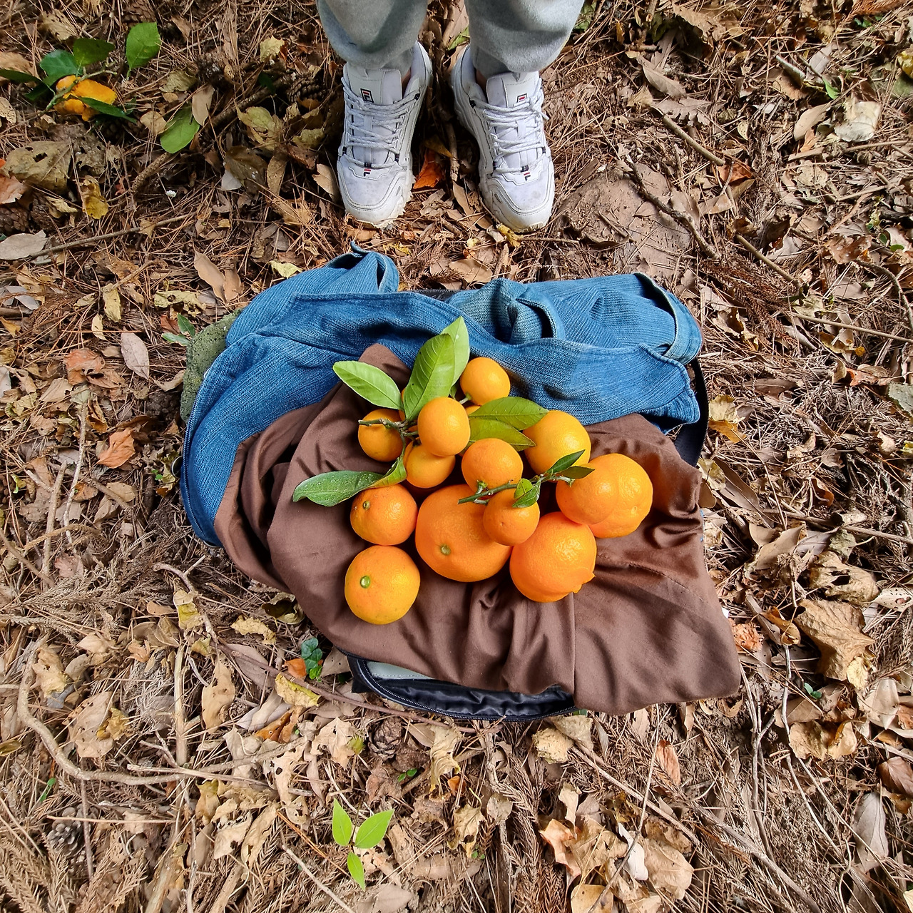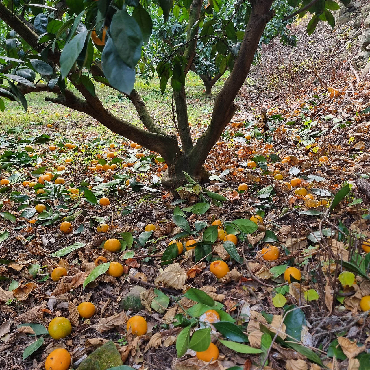 바닥에 썩어문드러진 아까운 귤들을 나뭇가지로 걷어차고 굴리면서 생생한지 확인해 본 결과.