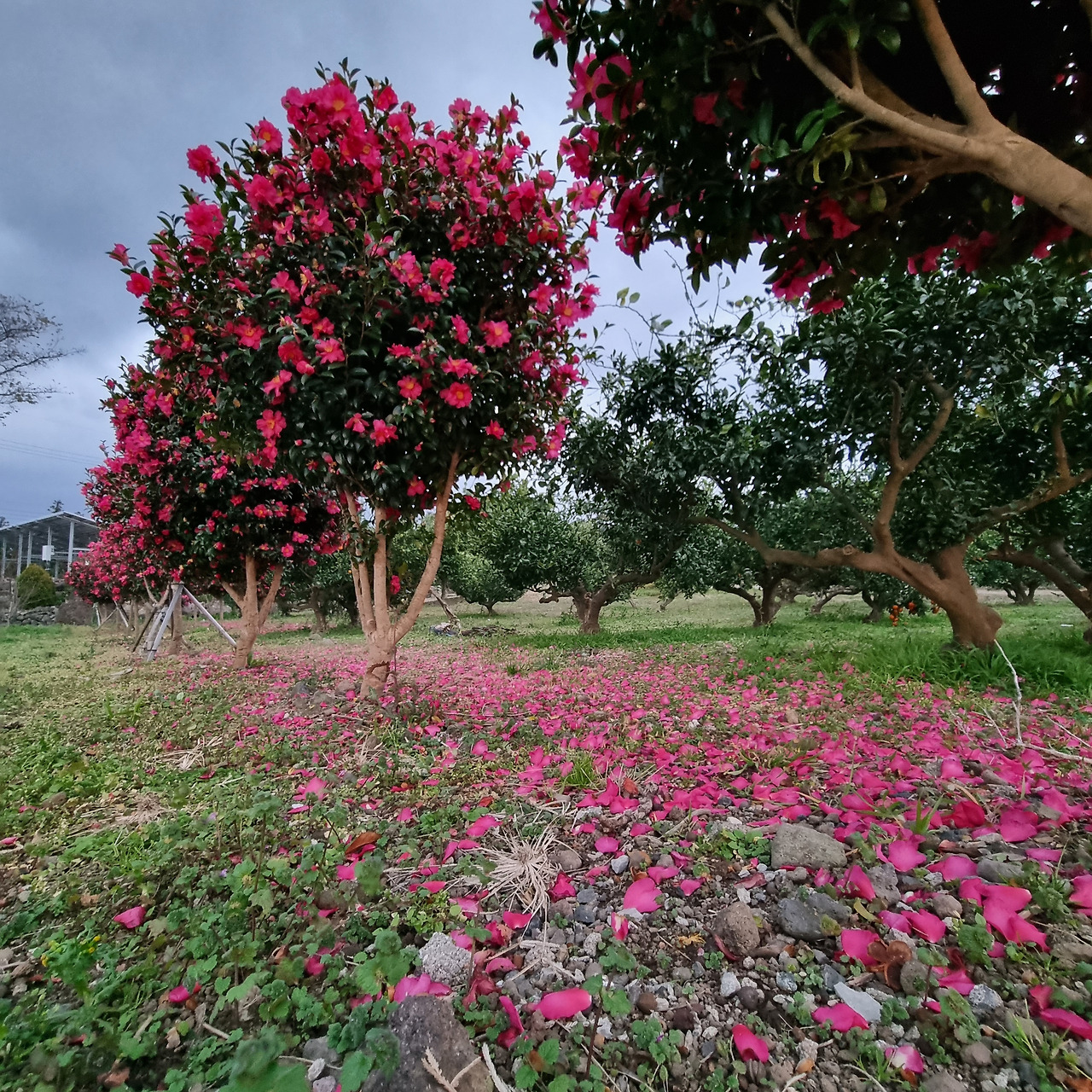 인근에 동백꽃도 볼 수 있다. 물론 바닥에 날린 몇 꽃송이들이 마음을 아프게 했지만 그래도 이걸로 만족하니 어디야. 비자림 저리가라임. 이걸로 됐다. 12월 마무리 진짜 잘했네 나 제주도 잘 왔다.
