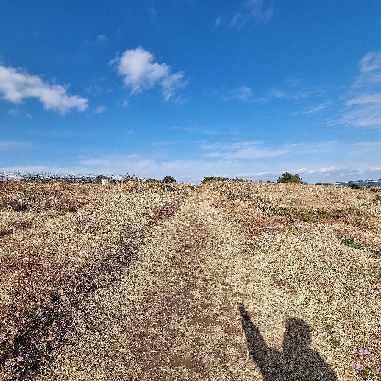 사진으로는 완벽히 이 아름다운 풍경을 담기에는 다소 어색하였고 실제로 보는 모습만큼 나오지 않아 살짝 실망했지만 어떻게 하겠는가. 하지만 이렇게 좋은 날에 저기 멀리 보이는 성산 일출봉과 사람들의 흔적이 없는 이 올레길을 걸으면서 진짜 마지막 날 장식 잘 할 수 있겠다는 마음가짐과 포부를 가져야겠더라.