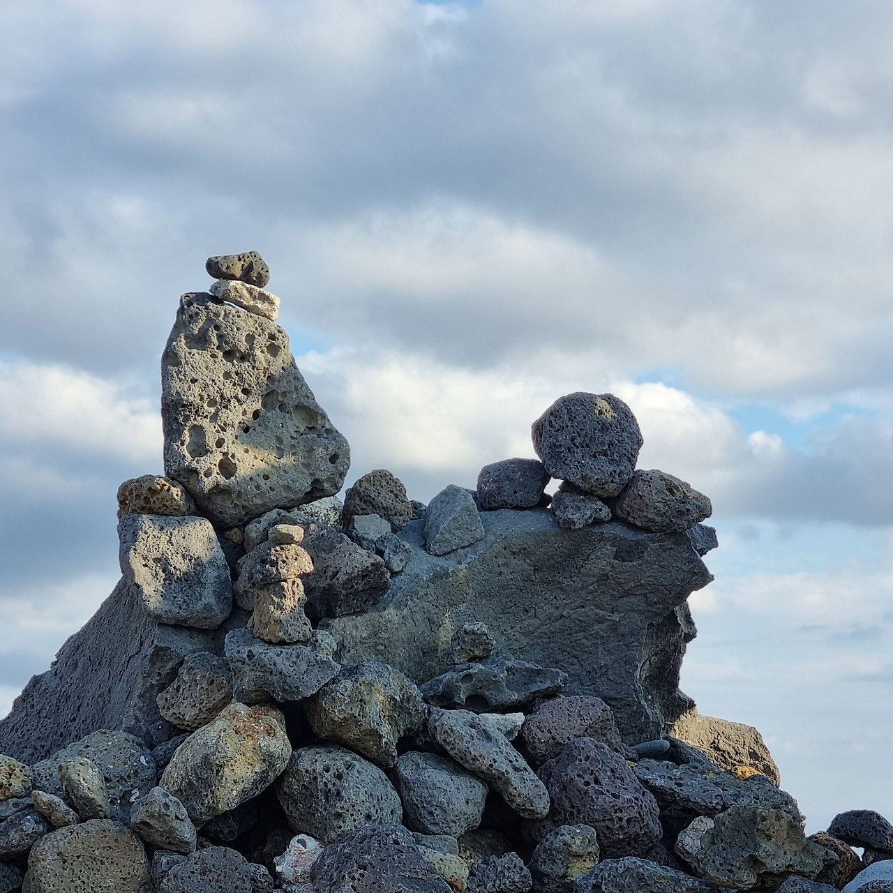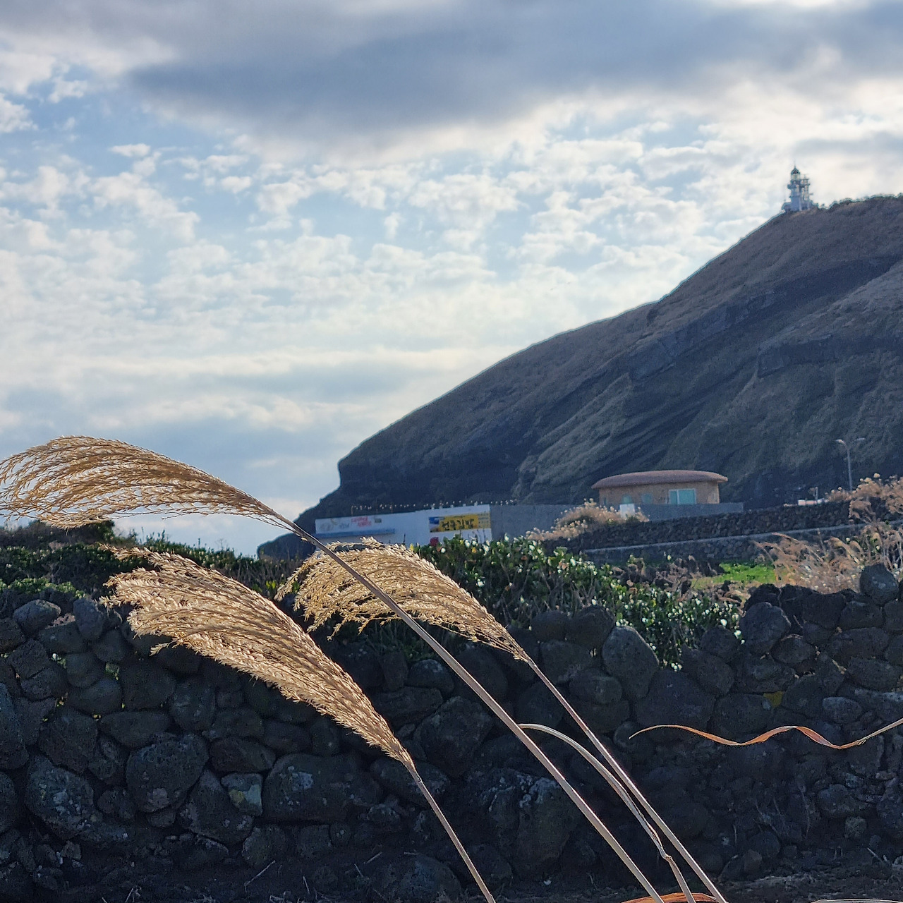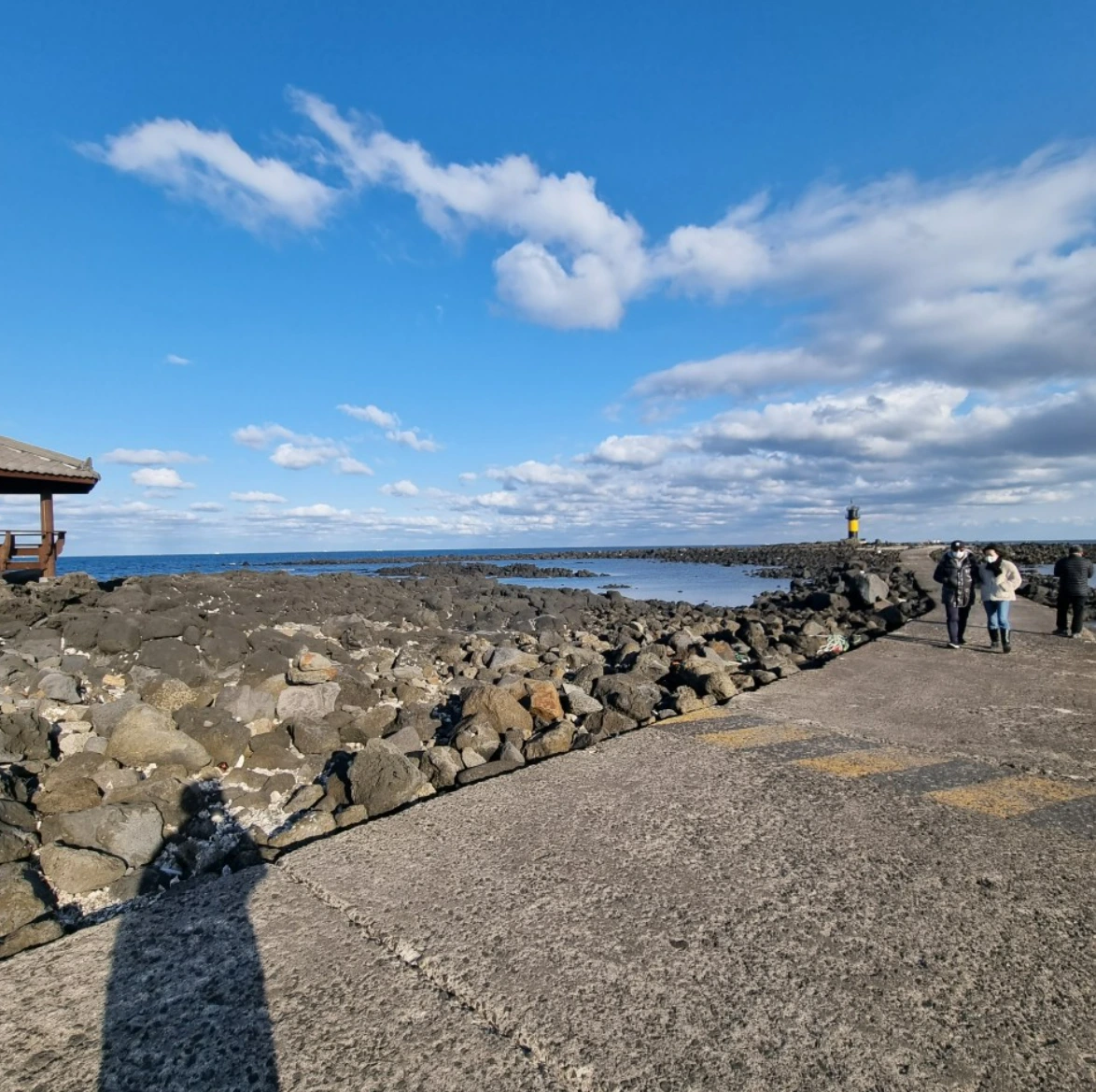 평상시에는 이런 그림자 샷도 안 찍으면서 나 이때 엄청 감정이입됐나 보다. 인근에 있는 이 푸른 소라와 현무암의 조합은 말로 형용이 안되고, 잘 모르겠지만 제주도 하면 동백꽃, 유채꽃, 데이지 꽃이 유명하지 ?