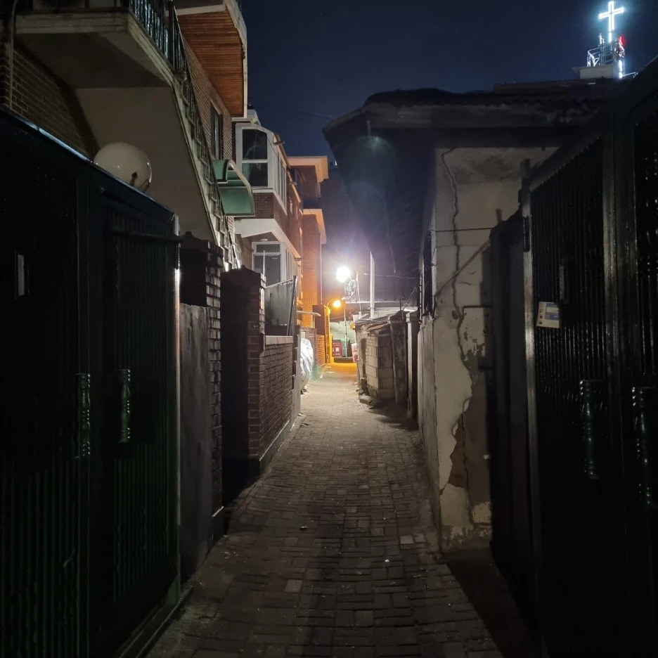 그래도 몰래 들어갔던 당시 풋풋했던 청년들이었죠. 한 야밤이었어요. 경비원 몰래 들어갔어요. 친구는 랜턴을 몰래 가져왔더라고요. 그리고 위 사진에 보이는 입구로 들어갔습니다. 그런데 알고 보니 군인 아파트였어요. 바로 앞에는 보초병들이 서 있었고, 주위 군인들은 왜 민간인이 함부로 들어오냐면서 나무랐어요. 사실 이미 성인인 저희들도 대뜸 말대꾸를 했지만 이미 위법을 저지른 저희가 잘못했죠. 그래도 그냥 경고음만 날리시고는 얼른 나가라고 독촉했던 해당 아파트 경비원분과 군인 간부들 덕분에 겨우 빠져나올 수 있었어요.