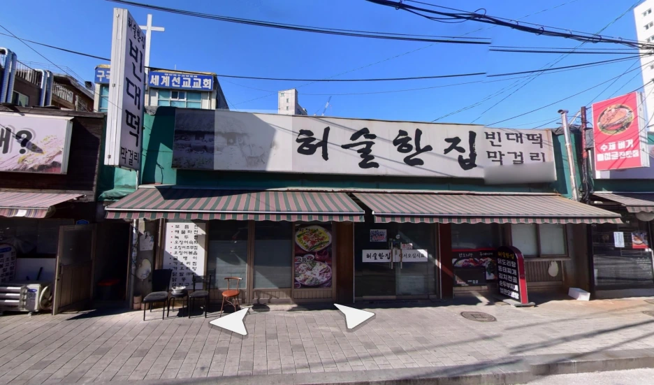 그분들이랑 이야기할 여유도 없고, 굳이 이야기할 껀덕지는 없었지만 여느 사회인이 되어 그분들과 이야기할 타이밍이 생겼어요. 바로 이 막걸리 골목에서 고등학생 친구와 술을 마실 때죠. 정확히 기억납니다. 2018년 어느 여름날. 비가 추적추적 내리니 친구와 막걸리를 먹고 싶었어요. 그래서 바로 이동했던 곳이 이 골목 사이를 누비면서 '허술한 집'이라는 맛집을 찾게 되었어요. 간판부터 허름해질 듯한 느낌이랄까.