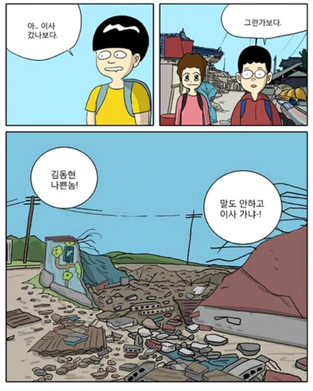 동현이는 결국에는 할아버지가 돌아가시고 인근 동사무소에 의해 다른 지역으로 이사 갈 예정이었지만, 이승의 주인공들이 동현이를 위로해 주고 결국에는 신으로 재탄생되는 과정을 보여주었다. 이는 소시민의 삶을 적절히 그려내고 또한 지극 적성으로 우리 삶을 무한히 녹여낸 작품이라고 생각이 들었다.