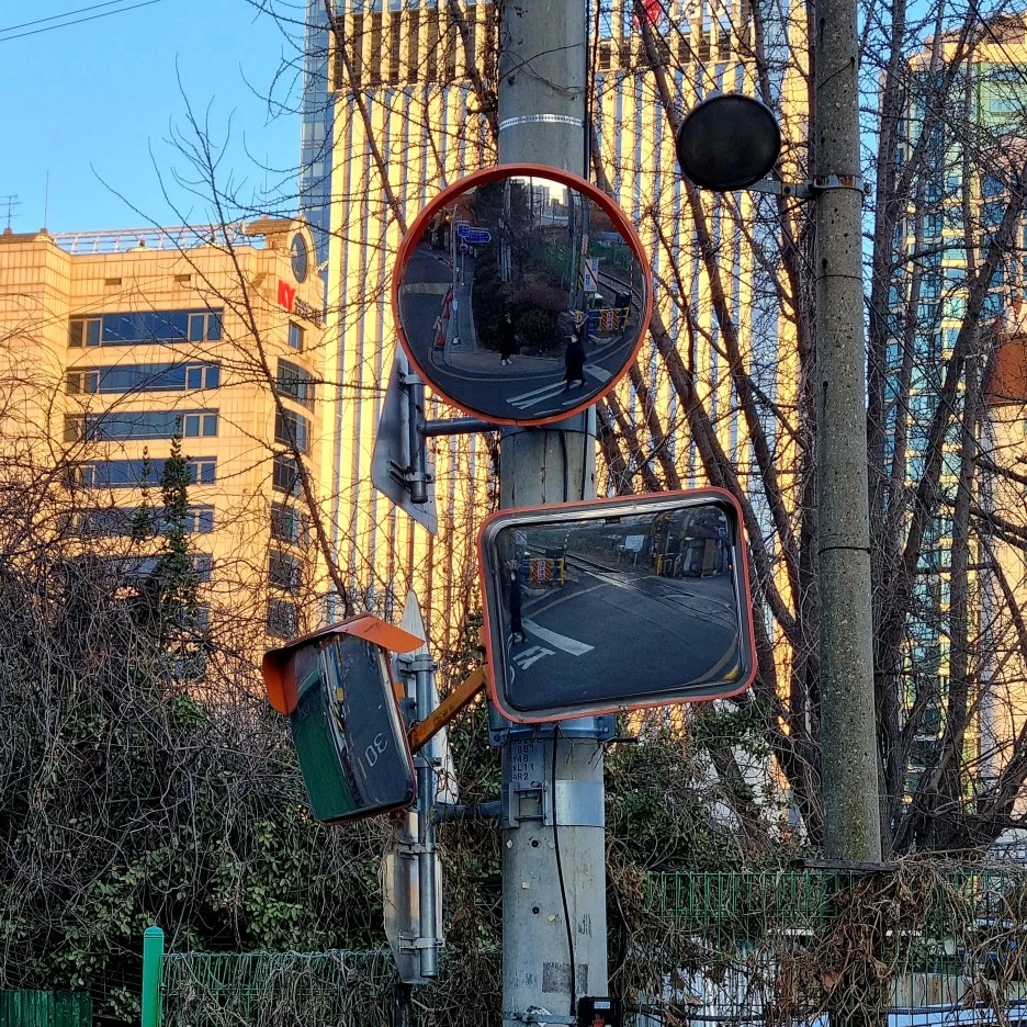 거울에 비춘 나의 모습과 동네 공간이 마주치는 순간. 소소함에서 예술을 얻어간다. 공간에서 예술을 얻어간다. 그것이 진리이다.