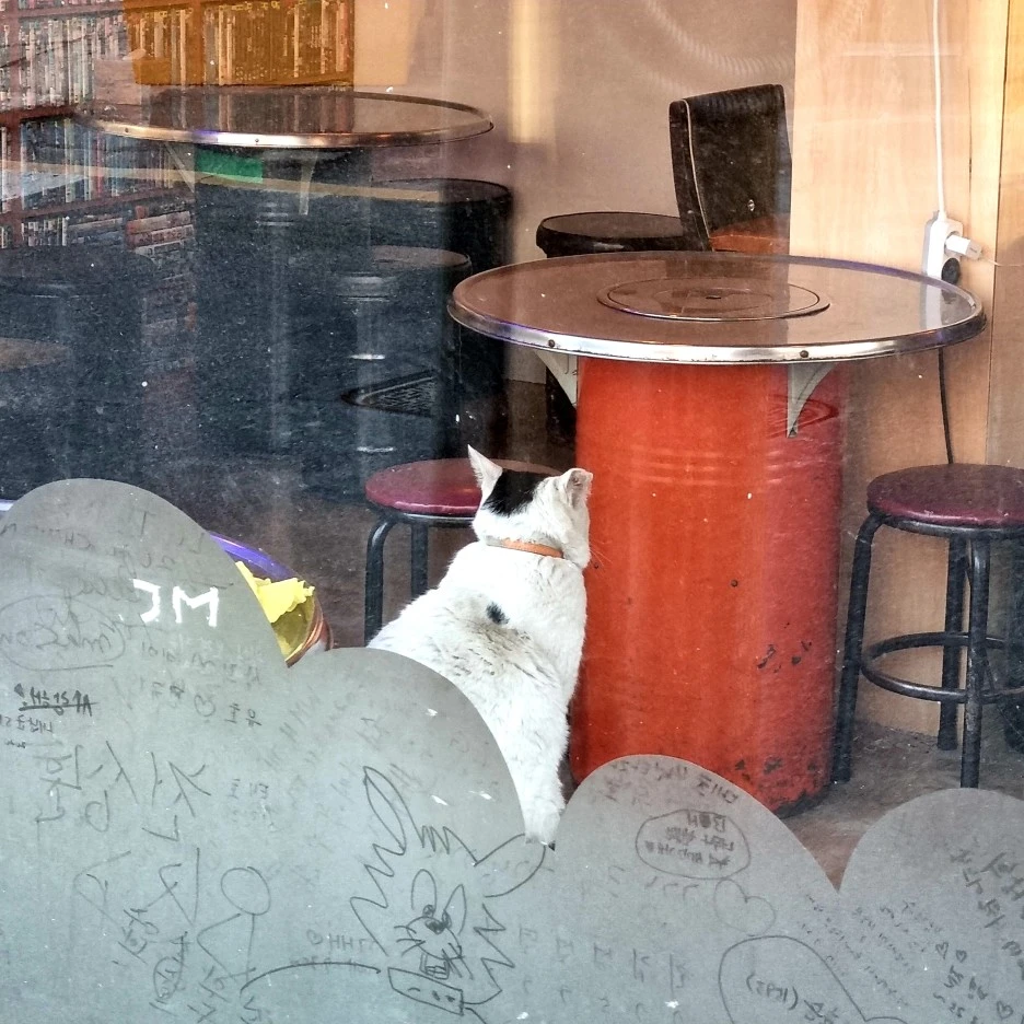 우리 점박이 고영희가 웬일로 내 눈앞에 아른거리더라. 문을 툭툭 쳐도 귀만 살짝 움츠리기만 하는 녀석. 참고로 이 장소가 심히 궁금했다. 담배 피우러 나오신 사장님께 여쭈어보았다.