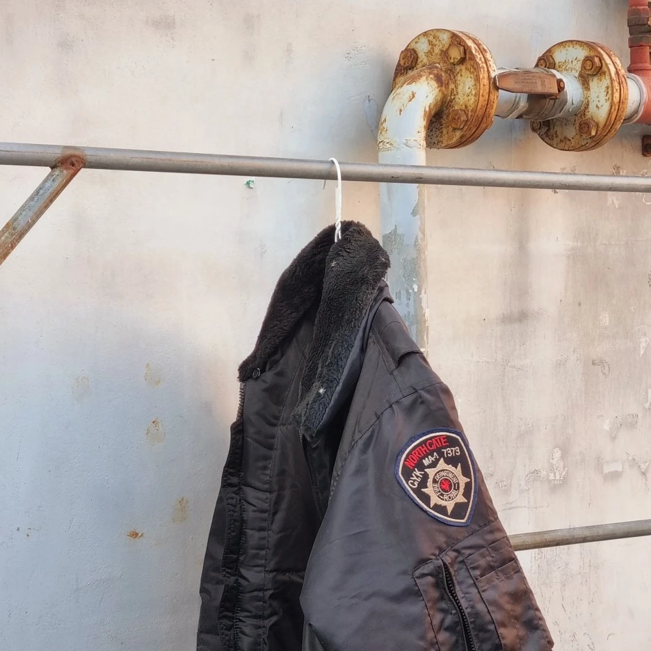 누군가의 항공 점퍼. 아마 인근에서 일하시는 분들의 노고가 깃든 점퍼임이 분명하다. 구제 옷을 연상케 한다. 예전 외할아버지가 중대장이셨을 무렵, 이 느낌의 항공 점퍼를 입고 가끔 읍내로 출장 가셨다고 한다. 엄연히 권위적이되 그 사람의 자질과 계급을 엿볼 수 있는 외관이 '옷'이 아니겠는가.