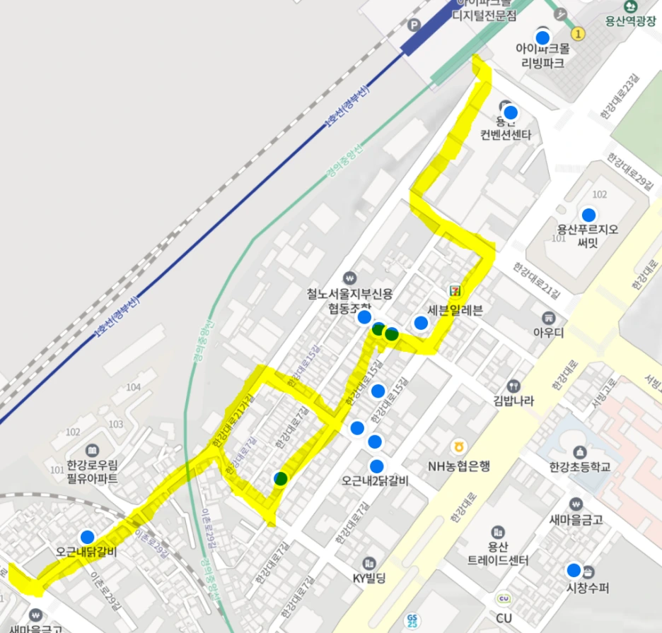 저 멀리 보이는 용산의 새로운 대기업 건축물들이 하나둘씩 올라가기 시작했다. 이미 2년 전부터 서울 시장 오세훈이 이야기했던 것처럼 이 용산은 3년 뒤면 새로운 자리로 재탄생할 것이다. 그래서 미리 이 기록 일지를 작성하고 골목 투어를 위한 분들께 소중한 자료로 제공되길 간절히 바란다.