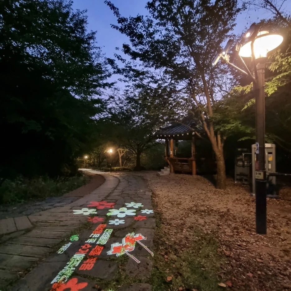 참고로 위치는 안산공원과 홍제천 사이에 있는 벚꽃 마당이라는 봄에 다양한 꽃을 볼 수 있는 공원이 있다. 그러나 가을밤에도 느낌 있는 경관을 연출하는 곳이기도 하다. 그 이유는 아래 사진을 보면 안다.