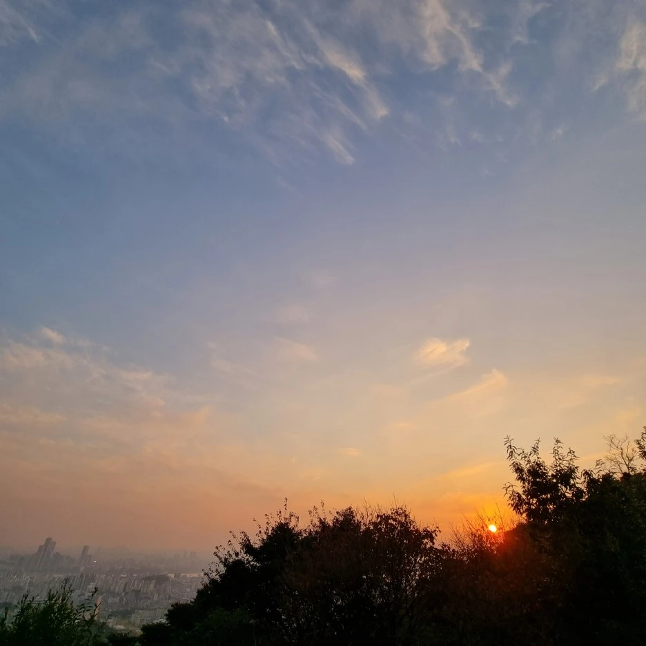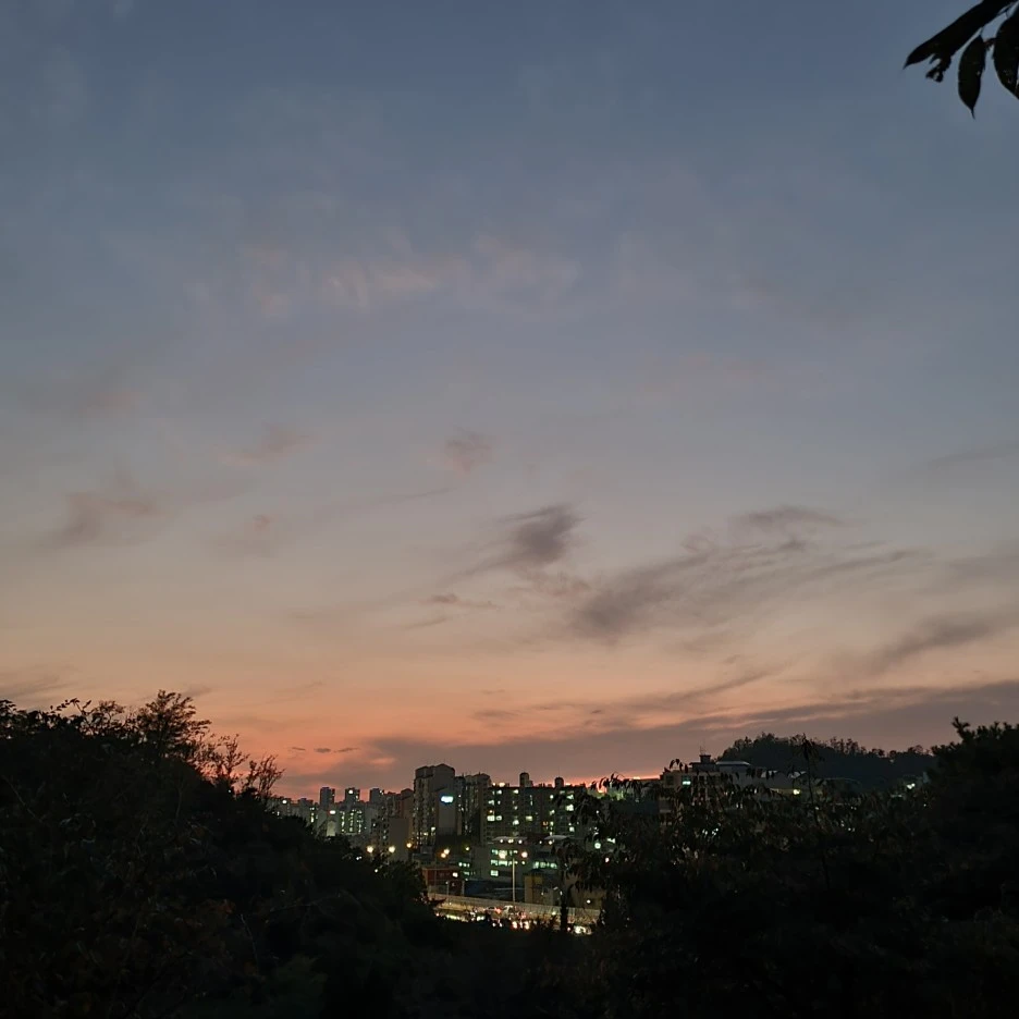 일몰이 슬슬 퍼진다. 노른자가 얼른 퍼져서 도시 하늘 전체를 물들었으면 좋겠다.