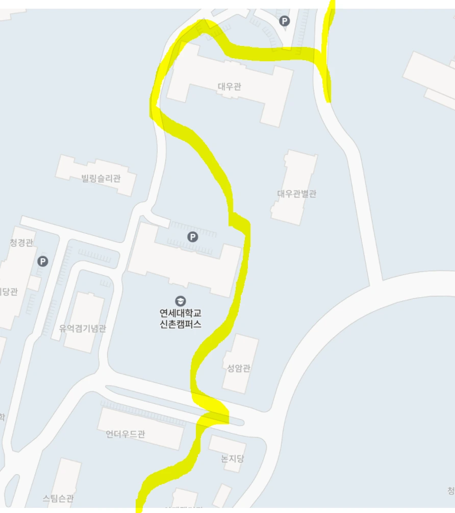 이 구간은 대학 축제 기간 때 주차장으로 활용되었다. 내 기억으로는 대학교는 5월마다 정기 축제가 있거나, 늦으면 2학기 9~10월 사이에 진행한다. 2015년(11학번 / 고인물)에 당시 유행했던 코로나의 동생 뻘 메르스 때문에 대학 생활 고생했던 기억이 난다. 그럼에도 불구하고 응원단 덕분에 대학 라이프가 그렇게 무덤덤하지는 않았다. 교내 생활 안 해서 문제였다. 학회장한테 미움받았던 내 신세. 그러나 대외활동과 연합 동아리 활동에 더 치중했던 나는 후회하지 않는다.