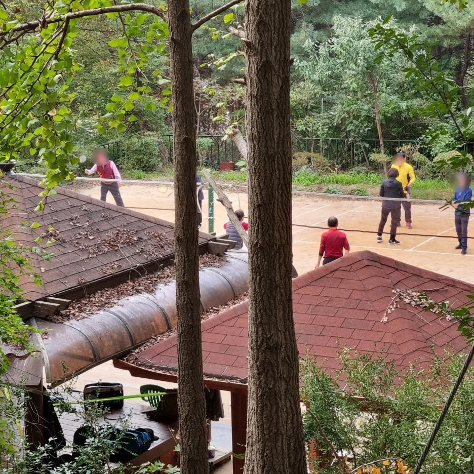 배드민턴 치시는 토박이 주민 어르신들. 다들 혈기왕성하게 '핫' '헛' '흐앗' '할 수 있다 할 수 있다 후회 없이 후회 없이' 구호를 외치신다.