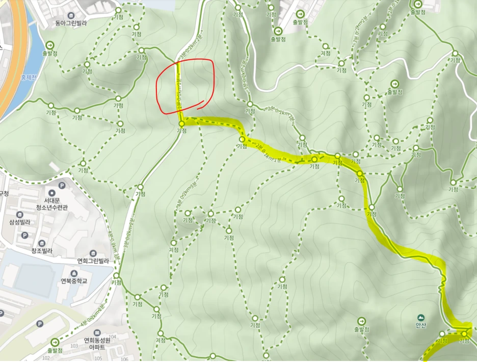 생각해 보니 신촌동에서 안산을 넘고 응암동 인근까지 왔다. 전체적인 경로는